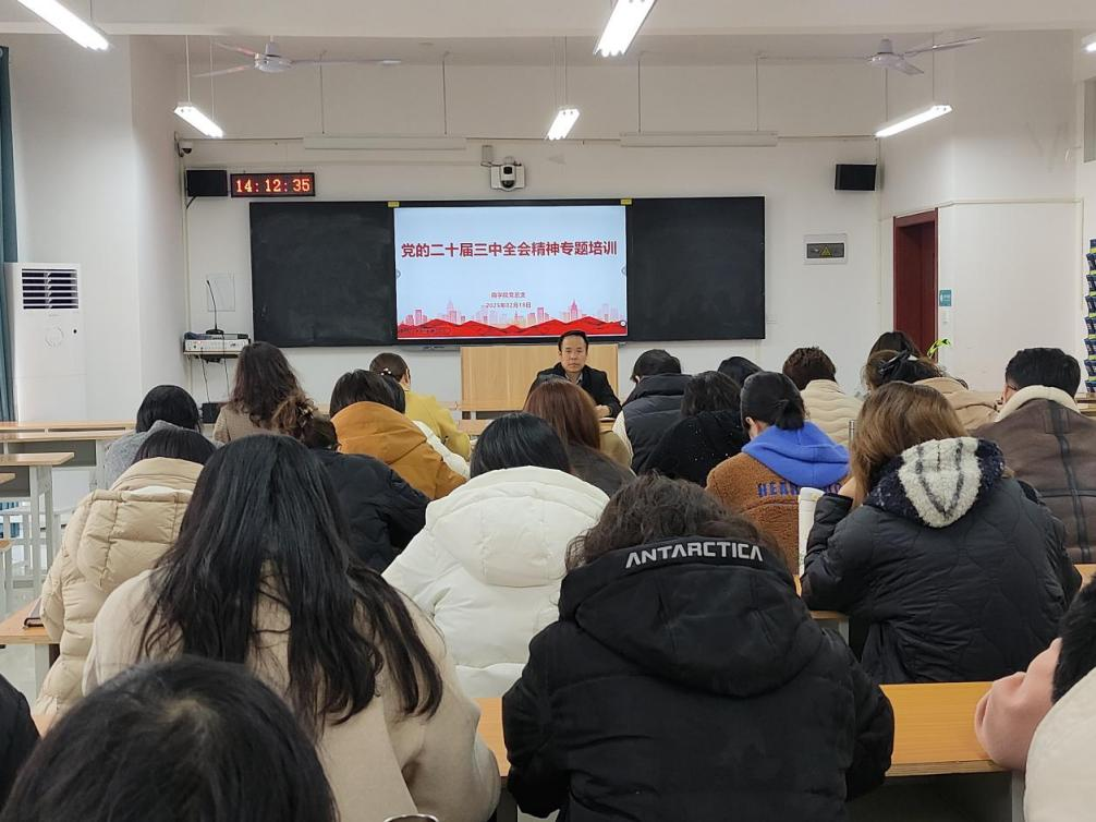 2025年2月18日下午,pg游戏电子模拟器党总支组织召开了党的二十届三中全会精神专题培训。会议由pg游戏电子模拟器党总支书记苏云峰主持,全体党员教师参加。