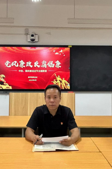 会议伊始,苏云峰向全体教师传达了学校纪委下发的《关于2024年中秋、国庆期间做好廉洁过节工作》的文件精神。他强调,一是要深入学习贯彻习近平总书记关于作风建设和师德师风建设的重要论述精神,深化思想认识,提高政治站位。二是要严明纪律规矩,认真学习《中国共产党廉洁自律准则》等文件,强化“八小时之外”自律,加强自我约束,强化底线思维,严守纪律规矩。三是要以案明纪,广大党员干部要以公布的典型案例为鉴,汲取教训,坚决抵制不正之风,增强思想自觉和行动自觉,巩固党纪学习教育成果。