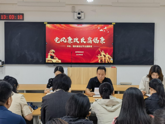 为贯彻落实中央八项规定及其实施细则精神,持续强化全体教师的纪律意识、廉洁意识,积极营造崇廉尚俭、文明清爽的节日风气和良好育人环境,9月24日下午,pg游戏电子模拟器党总支组织召开廉洁过节主题教育会议,会议由pg游戏电子模拟器党总支书记苏云峰主持,全体教师参加会议。