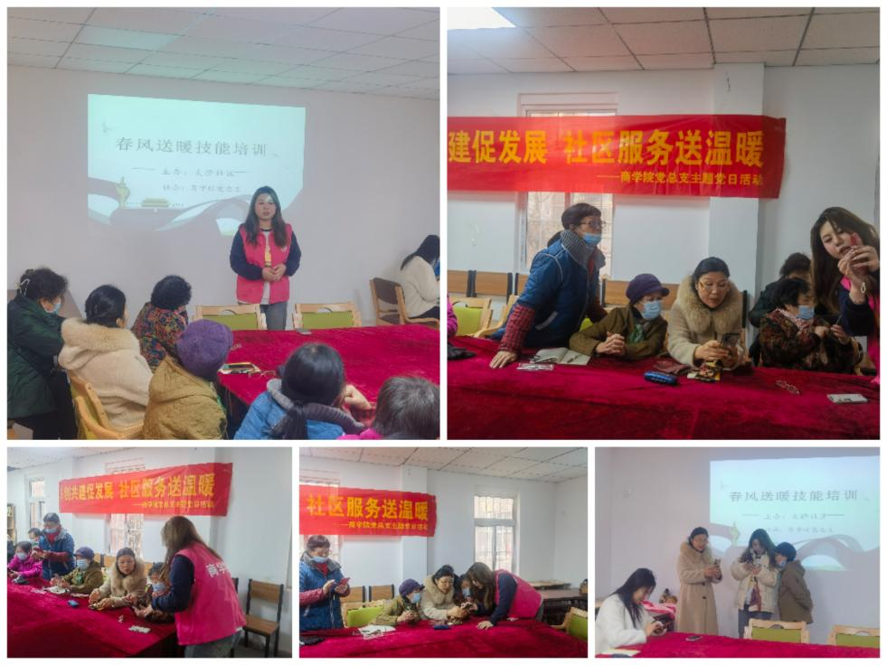 党员师生针对老年人开展科普防电信诈骗知识,提醒老人不要点击不明网络链接,不轻信陌生人的电话和短信,并告知老年人不要向陌生人透露自己的身份信息、银行卡密码等,通过让老年人健康、科学和安全地使用智能手机,共享数字化便捷服务,引导老年人辨识骗局,提高防范意识。