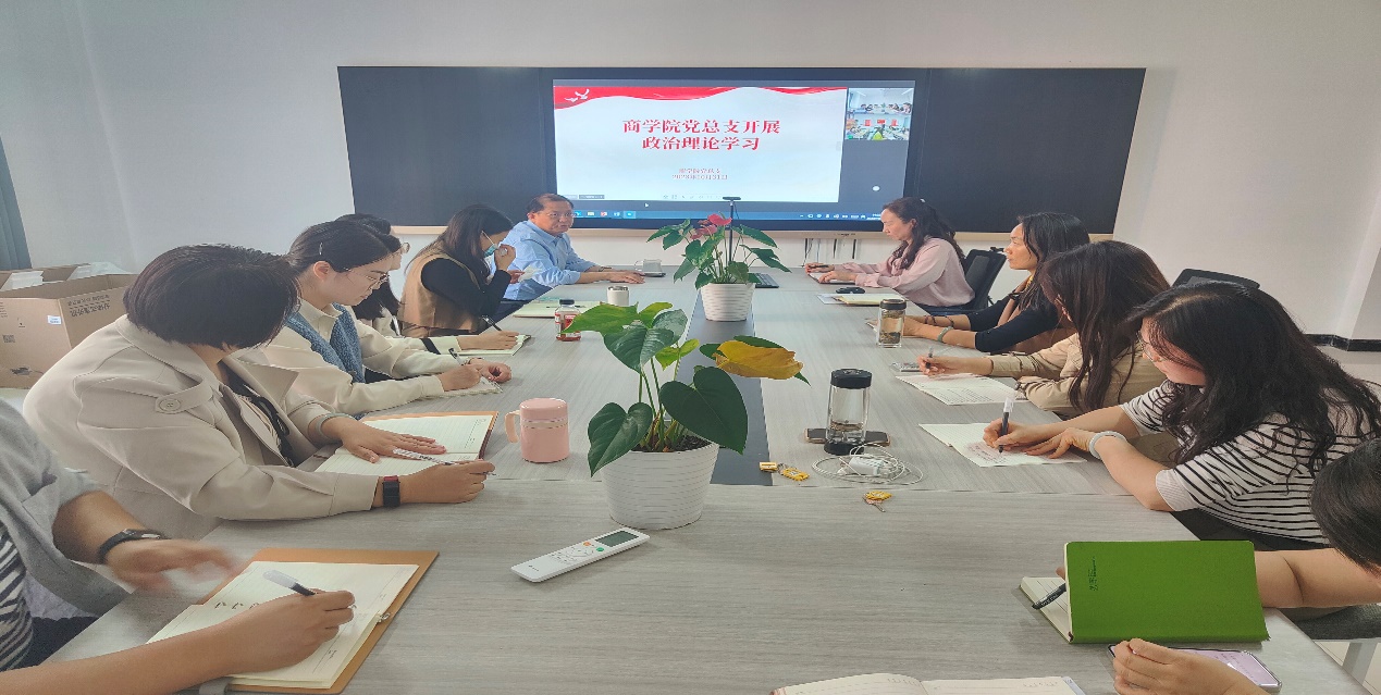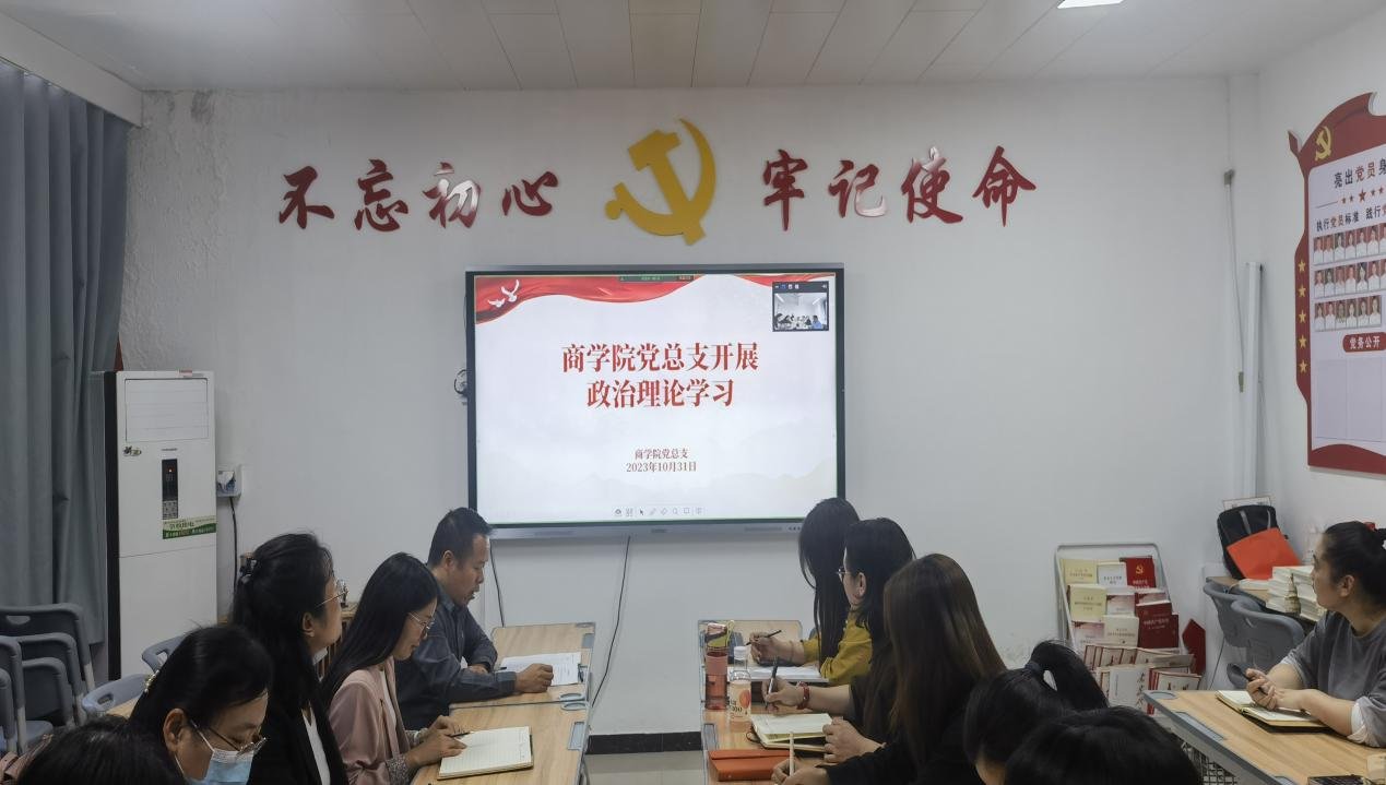 2023年10月31日下午,pg游戏电子模拟器党总支组织全体教师开展政治理论学习,本次学习以线上、线下相结合的方式进行,郑汴两校区同时开展,由pg游戏电子模拟器党总支书记苏云峰主持,宣传委员刘嘉慧进行领学。