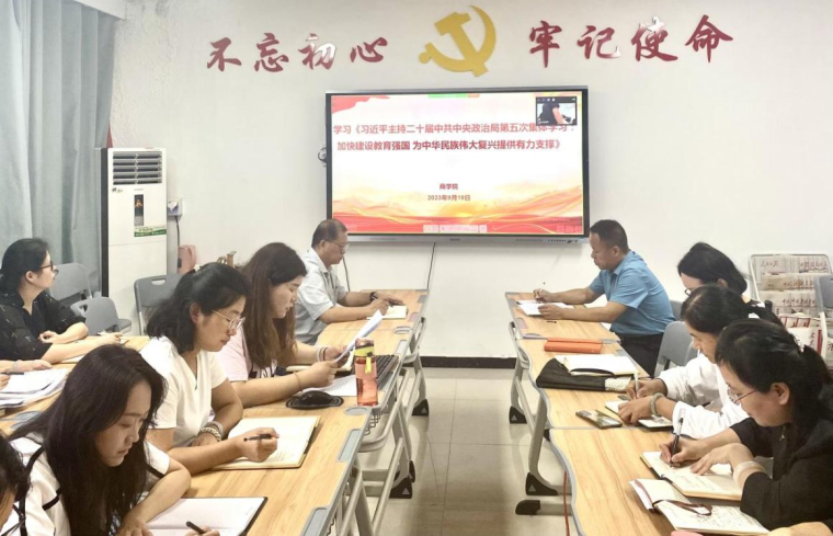 2023年9月19日下午,pg游戏电子模拟器党总支组织全体教师进行政治理论学习,本次集中学习以视频会议形式在郑汴两校区同时进行,会议由pg游戏电子模拟器党总支书记苏云峰主持、宣传委员刘嘉慧进行领学。