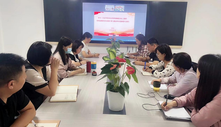 会上,刘嘉慧领学了《习近平在中共中央政治局第五次集体学习时强调加快建设教育强国为中华民族伟大复兴提供有力支撑》、《习近平在文化传承发展座谈会上强调担负起新的文化使命努力建设中华民族现代文明》、《习近平在中共中央政治局第六次集体学习时强调不断深化对党的理论创新的规律性认识在新时代新征程上取得更为丰硕的理论创新成果》的重点内容。