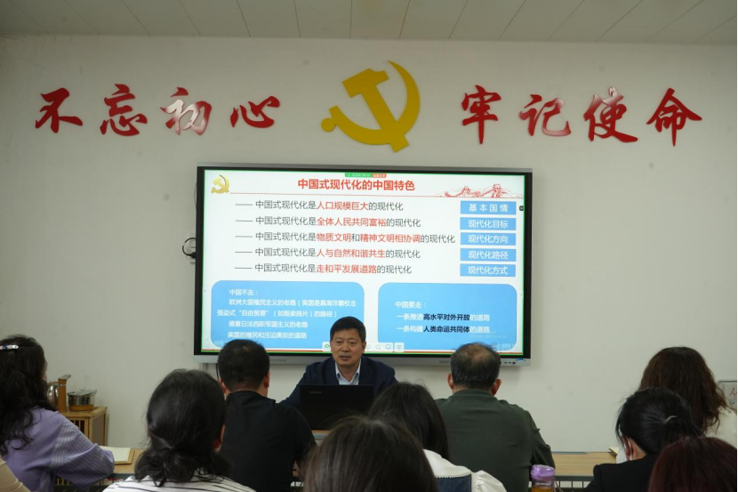 刘振民从“中国式现代化理论体系的基本构成”、“以中国式现代化实现中华民族伟大复兴的根本保障”两大方面,用近两个小时的时间进行了阐述,为师生党员带来了一堂深入浅出、意蕴深远的主题党课。从中国式现代化的根本性质、根本遵循、鲜明特色、世界意义等九个方面,全面深入的讲解了中国式现代化理论体系的基本构成;从“两个确立”、“四个意识”、“四个自信”、“两个维护”上彻底解决以中国式现代化实现中华民族伟大复兴的根本保障问题。古今对照、中外对比,既有国际局势的深入解读,又有我国人民利益至上、共同富裕现代化的呈现;既有整个国际国内经济局势的分析,又有pg游戏电子模拟器实践教学活动的经验分享与肯定,整个党课具有对比研究、以小见大、透过现象看本质的特点,激发了教师学生的爱国心与奋斗的激情,取得了明显的效果。