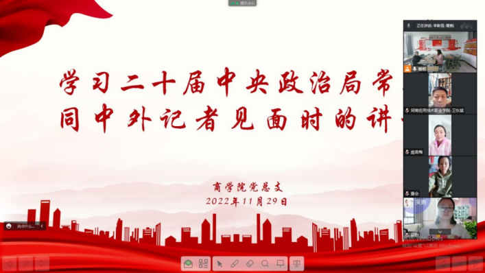 2022年11月29日下午,pg游戏电子模拟器组织全体教师进行政治理论学习,本次集中学习通过线上线下相结合的方式进行,由pg游戏电子模拟器党总支书记苏云峰主持,党总支宣传委员刘嘉慧领学。