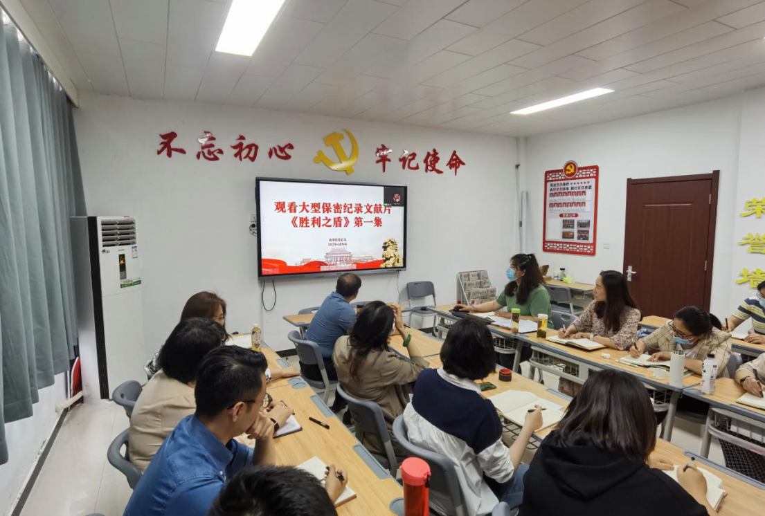 2022年4月26日下午,pg游戏电子模拟器在办公楼504组织东西校区全体教师集中观看大型保密纪录文献片《胜利之盾》。