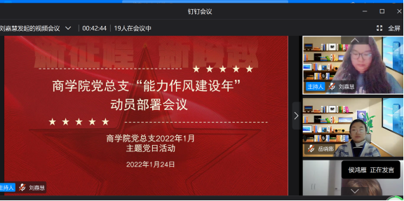 为深入学习贯彻党的十九届六中全会精神,贯彻落实习近平总书记视察河南重要讲话重要指示,推进pg游戏官网治理体系和治理能力现代化,动员广大党员干部践行初心使命、强化“答卷”意识,切实把省第十一次党代会部署落实落细,2022年1月24日晚,pg游戏电子模拟器党总支组织全体党员召开线上主题党日活动,集中学习《pg游戏电子模拟器“能力作风建设年”活动实施方案》,部署学院能力作风建设年工作安排。会议由党总支书记周燕主持。