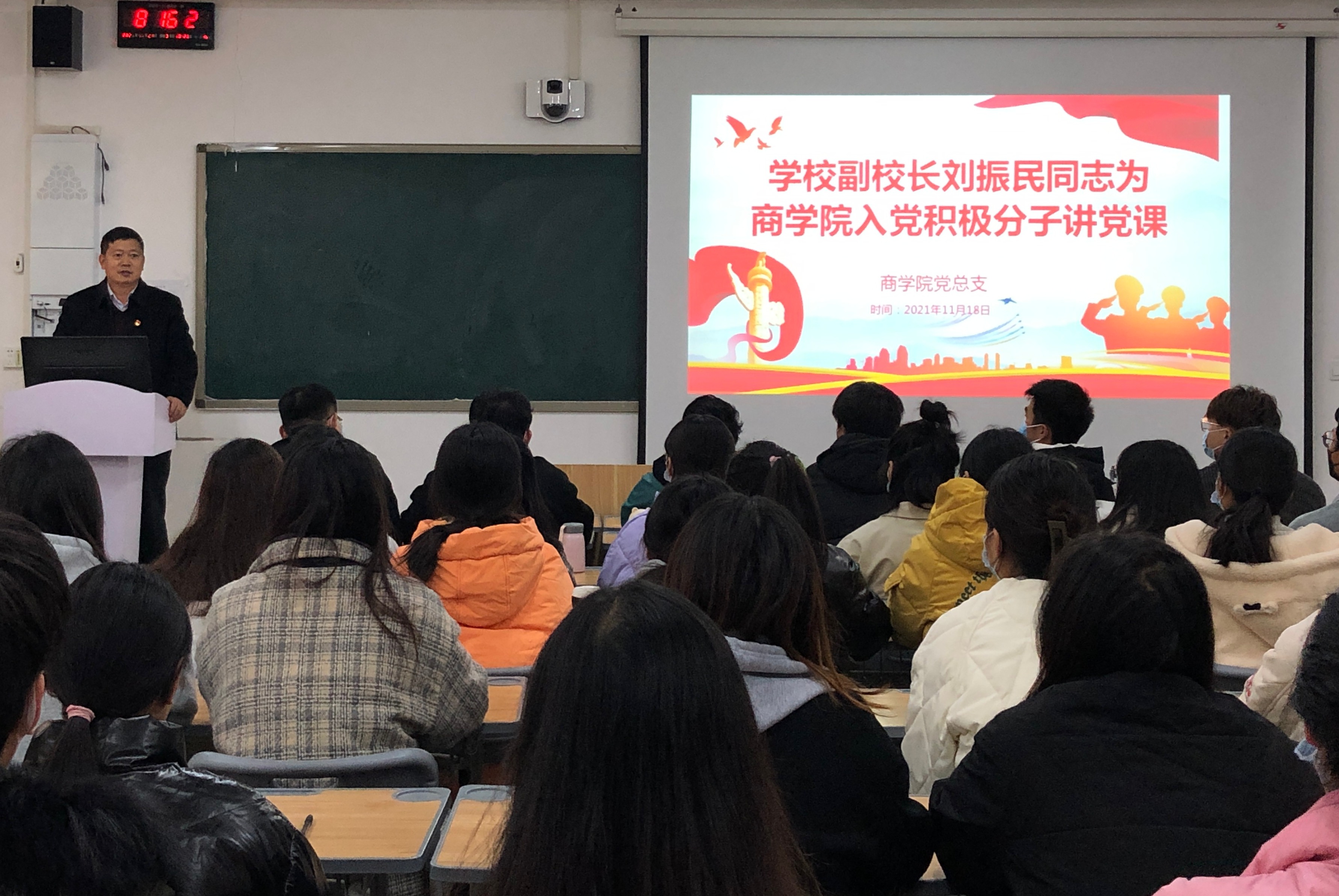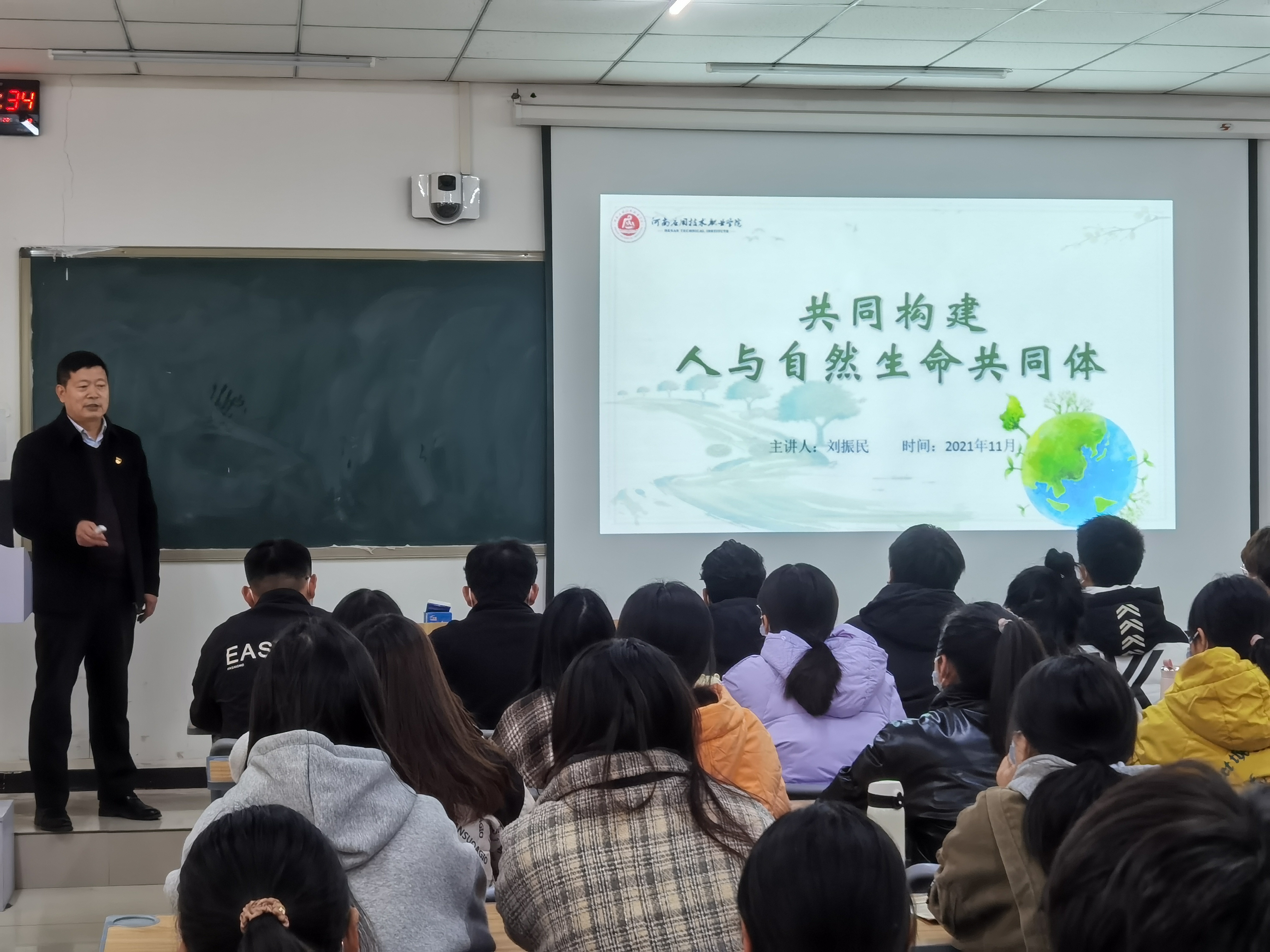 为深入贯彻落实习近平总书记在学校思想政治理论课教师座谈会上的重要讲话精神,有效推进学校党政领导干部上好思政课常态化,11月24日,副校长刘振民以“共同构建人与自然生命共同体”为题,为pg游戏电子模拟器电商班学生讲了一堂生动的思政课。