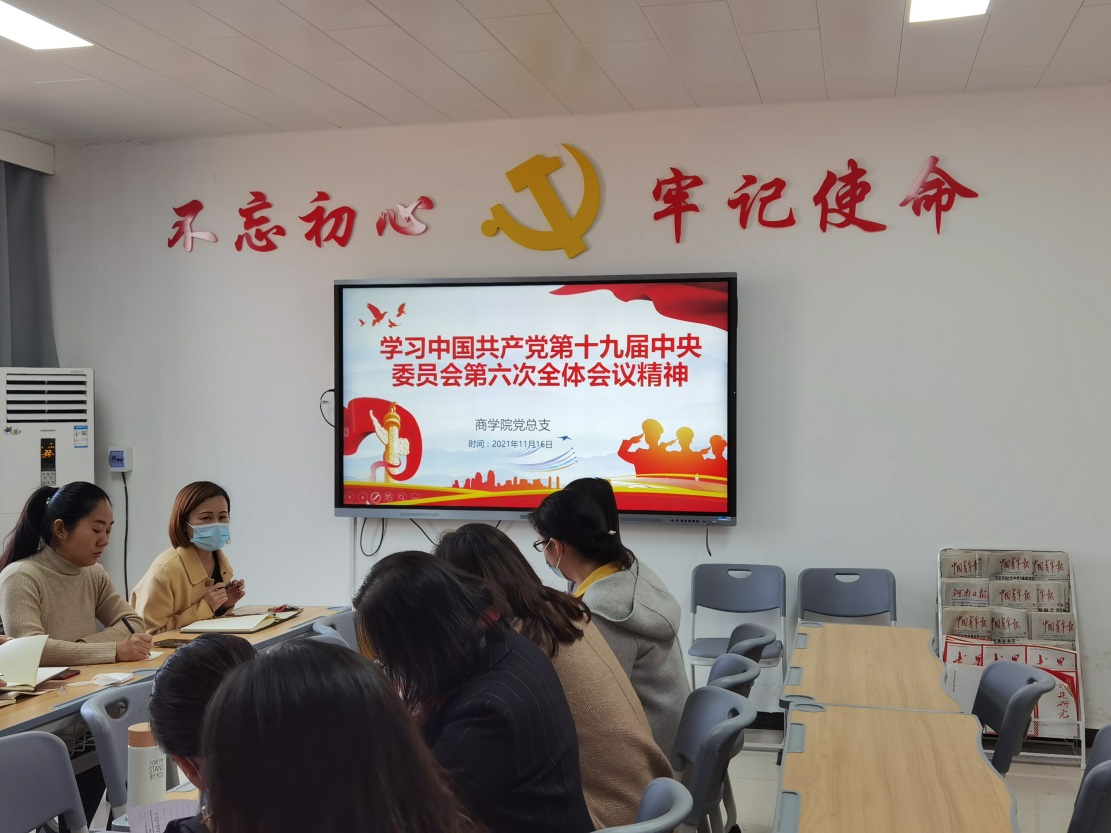会上,团总支书记李力领学了第十九届六中全会公报,教务办主任王珂领学了河南省第十一届党代会重要精神。周燕书记表示,党的十九届六中全会,总结了一百年来我们党从胜利走向胜利的伟大历程。在中国共产党的领导下,我们实现了第一个百年的奋斗目标,正意气风发地向着全面建成社会主义现代化强国的第二个百年奋斗目标迈进。她强调:作为高等教育工作者,我们要把学习和宣传贯彻好党的十九届六中全会精神和河南省第十一届党代会精神作为当前的首要政治任务,不仅要学好学深学透,还要勤思善悟会讲,潜移默化的转化到专业课教学中,加强课程思政建设,让会议精神深入课堂、深入课程、深入教学、深入心田。所有教师更要不忘初心,牢记使命,坚持从党的百年奋斗历程中汲取精神力量,竭力为党和国家培养德才兼备的社会主义建设者和接班人。