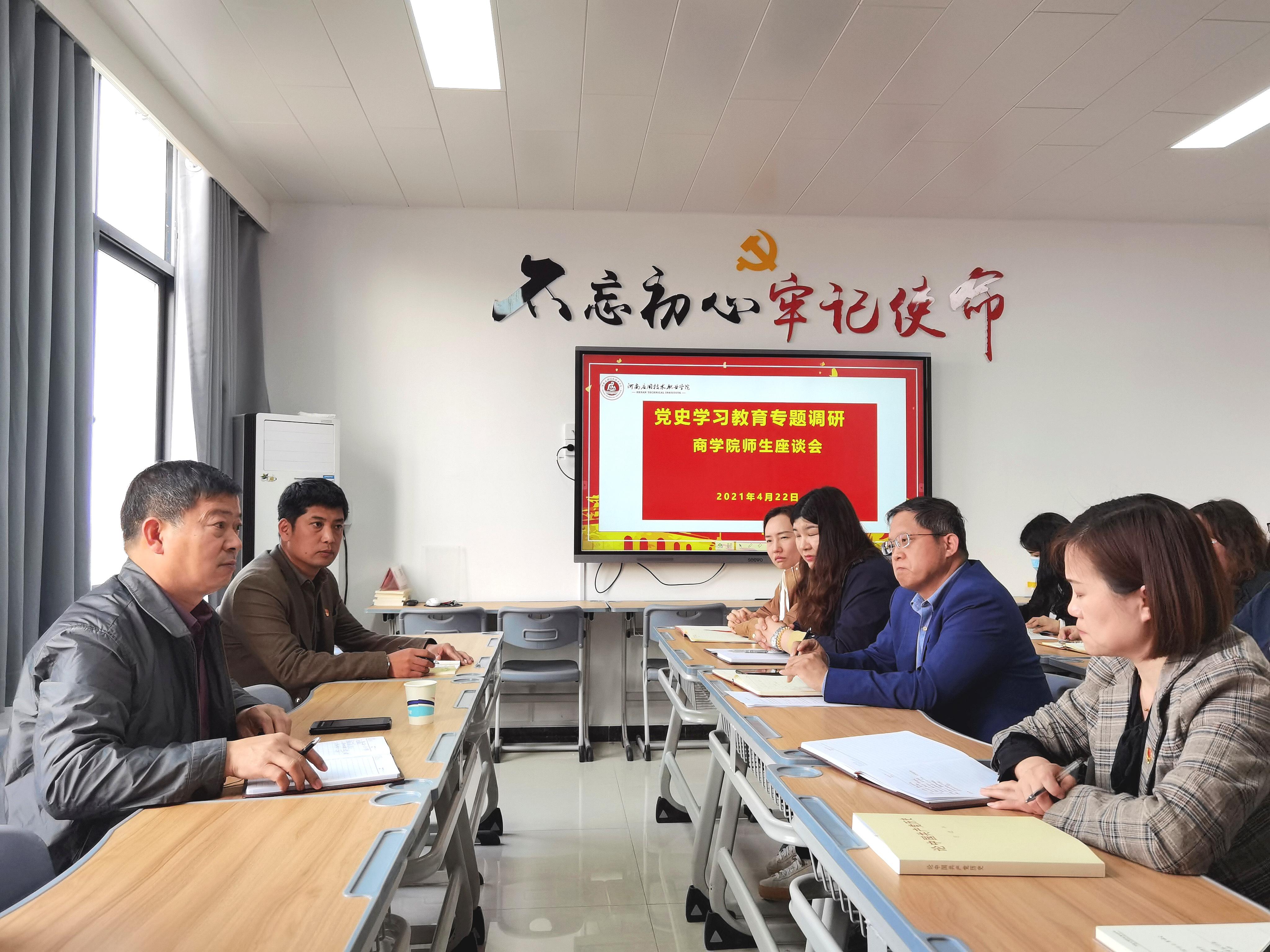 为进一步贯彻pg游戏官网《党史学习教育实施方案》相关要求,积极落实“我为群众办实事”实践活动,推动pg游戏官网党史学习教育深入开展,2021年4月22日下午,学校副校长刘振民在校团委书记张凡、校学生处副处长李海涛的陪同下来到pg游戏电子模拟器开展“党史学习教育”专题调研座谈会。会议由pg游戏电子模拟器党总支书记周燕主持,pg游戏电子模拟器部分教师以及学生代表参加了座谈会。