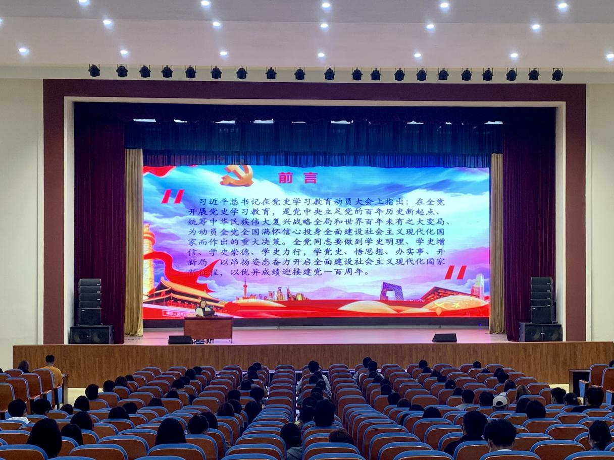 为深入学习贯彻习近平总书记在党史学习教育动员大会上的讲话精神,教育引导青年学生认清党史学习的重要意义,做到学史明理、学史增信、学史崇德、学史力行, 3月30日下午,pg游戏电子模拟器党总支书记周燕以“学百年党史 汲精神之钙 做有为之人”为主题上了“开学第一课”。pg游戏电子模拟器全体入党积极分子及学生干部参加了本次学习活动。