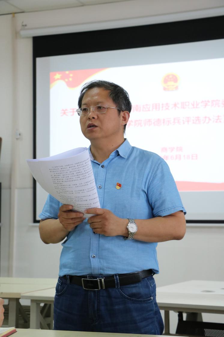 2019年6月18日下午,pg游戏电子模拟器党总支在E615召开全体教职工大会,对全体教师进行师德师风教育,组织学习《中共pg游戏电子模拟器委员会pg游戏电子模拟器关于建立健全师德建设长效机制的实施意见》等的相关文件内容。院长孙勇主持会议并做总结发言。