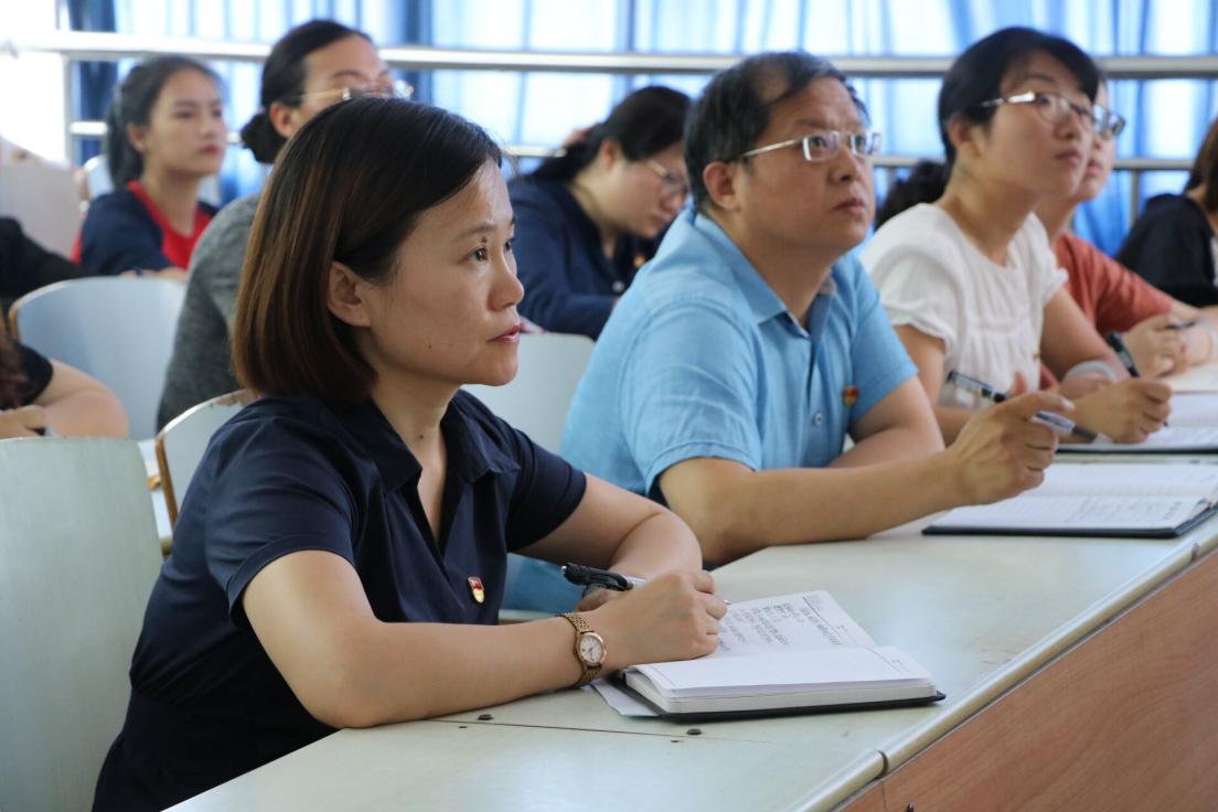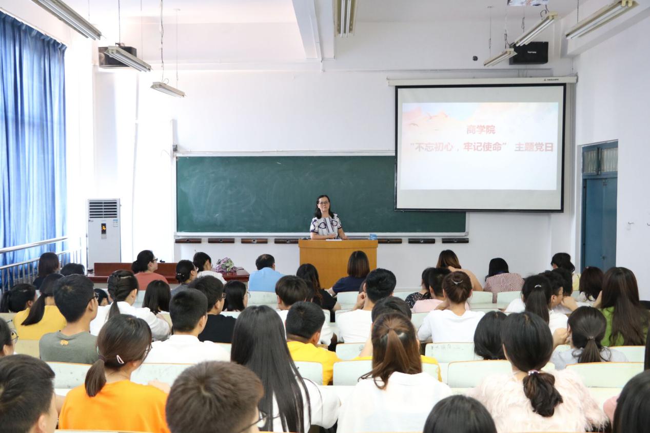 为了贯彻落实党的十九大精神和全国、全省教育大会精神,加强对党员习近平新时代中国特色社会主义思想教育,2019年6月18日下午,pg游戏电子模拟器在B楼303教室开展“不忘初心、牢记使命”主题党日活动。校党委委员陈君丽教授出席活动,并为全体党员及入党积极分子上一堂主题为《“不忘初心、牢记使命”做新时代的共产党员》党课,pg游戏电子模拟器党总支副书记周燕主持主题党日活动。