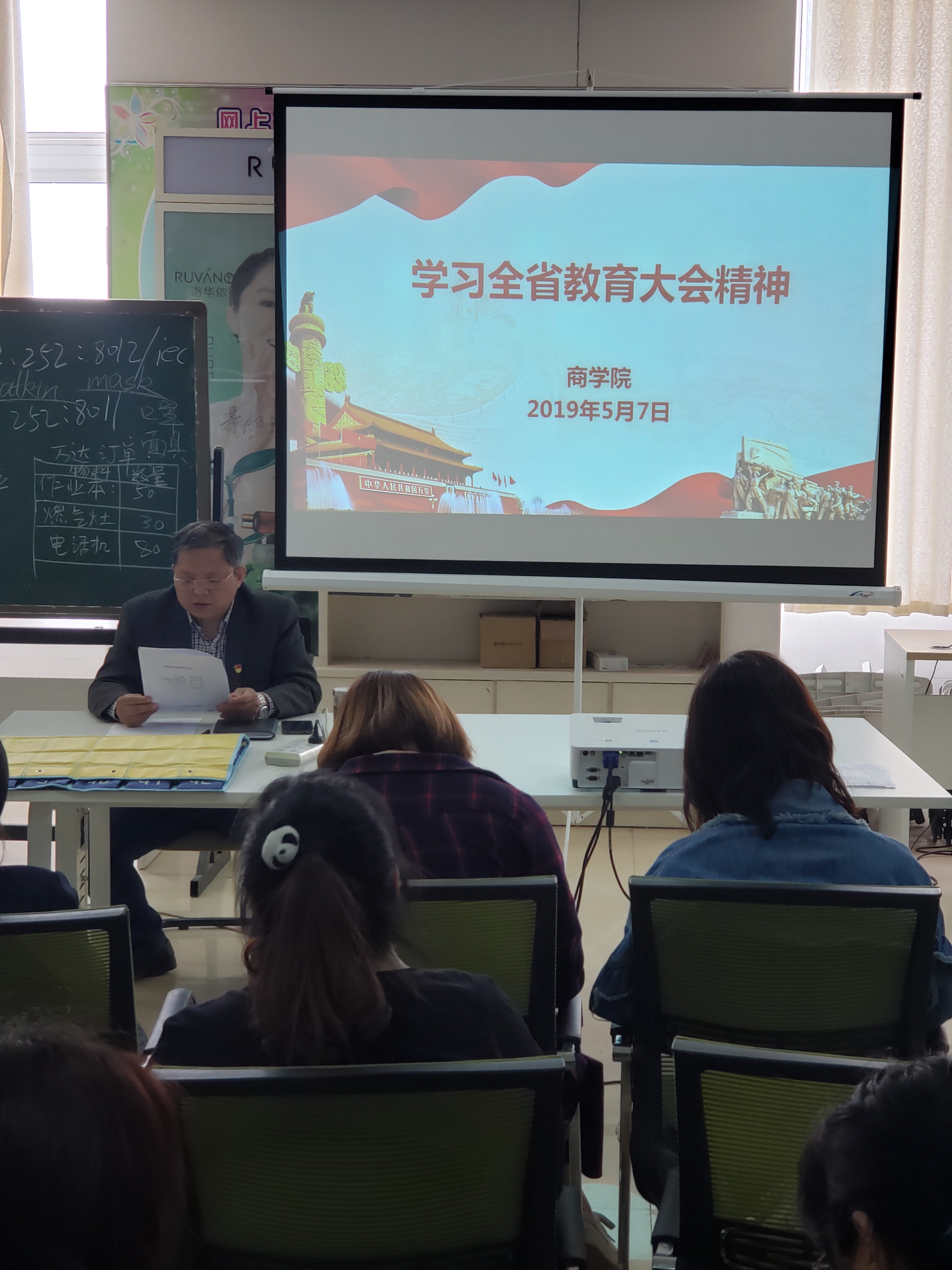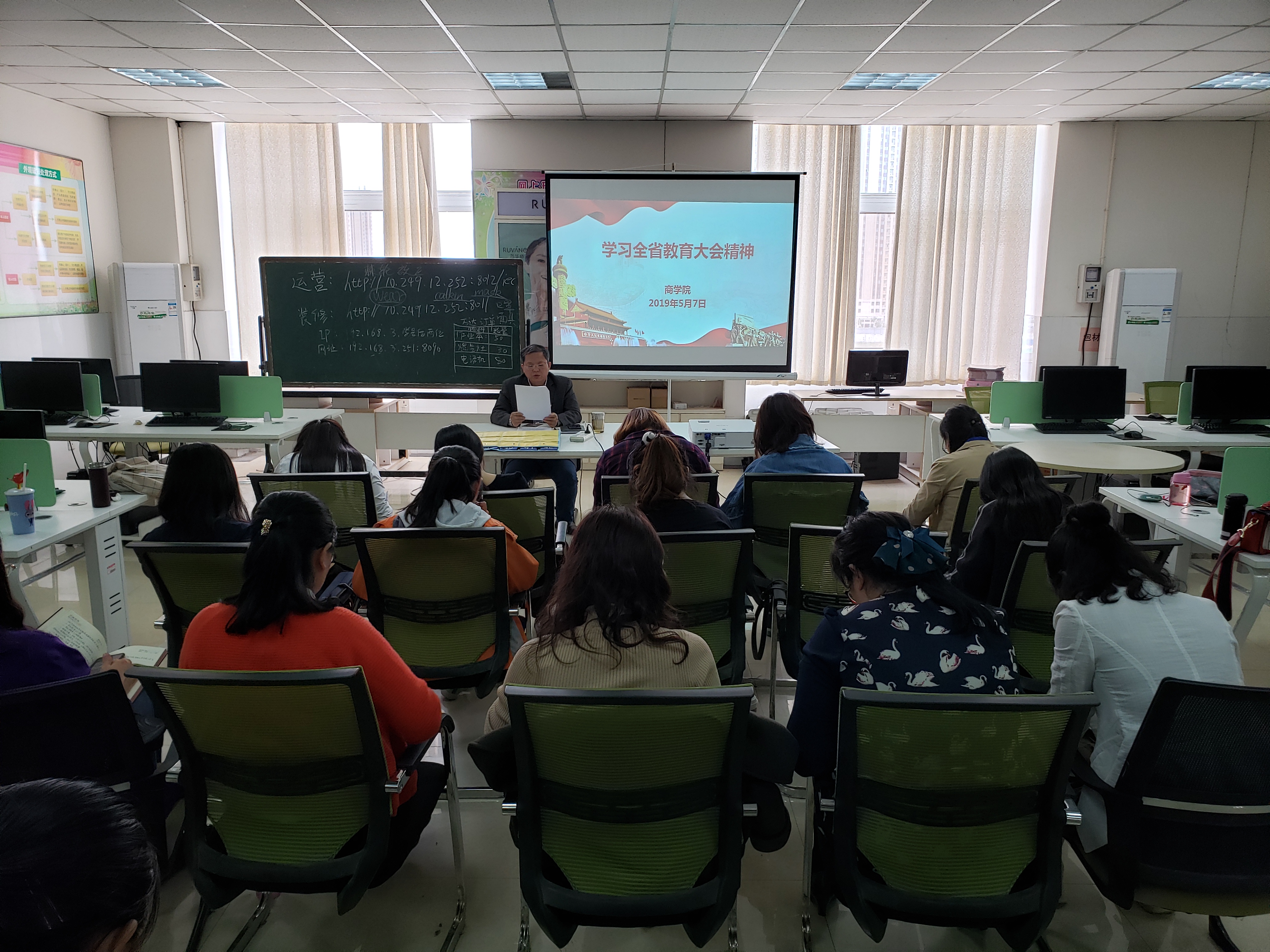 2019年5月7日,pg游戏电子模拟器全体教职工在E609教室学习全省教育大会精神。pg游戏电子模拟器院长孙勇同志主持会议。