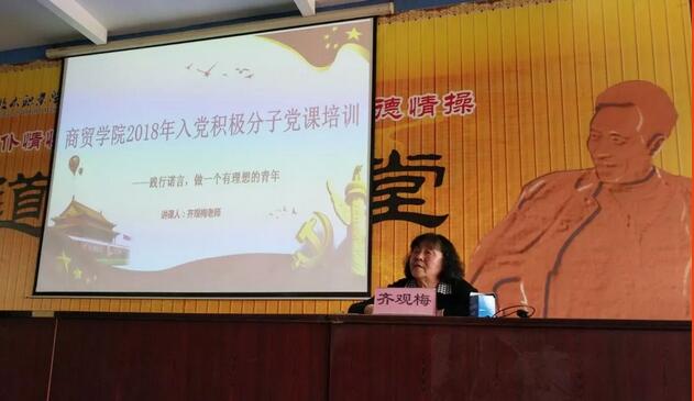 2018年5月23日,pg游戏官网齐观梅老师在B楼202为商贸学院教师、学生入党积极分子开展了一次生动的党课教育,商贸学院党总支书记周燕同志主持会议。齐老师以“践行诺言,做一个有理想的青年”为主题,探讨了在新时代要如何继承和弘扬中国共产党精神。