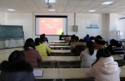 为了贯彻落实十九大会议精神,将“三会一课”制度在pg游戏官网得到全面深入的开展,2017年12月19日,pg游戏官网党委委员陈君丽教授在实训楼615为商贸学院教师开展一次生动的党课,商贸学院党总支书记周燕同志主持会议。