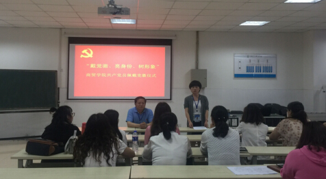 为加强基层党组织建设,充分发挥党员教师的先锋模范作用,引导和带动广大教师自觉投身“两学一做”学习教育,展示教师党员良好的精神风貌,2016年5月18日晚上教研活动时间,商贸学院党总支举行“戴党徽、亮身份、树形象党员教育活动暨共产党员佩戴党员徽章仪式。商贸学院全体党员参加仪式。