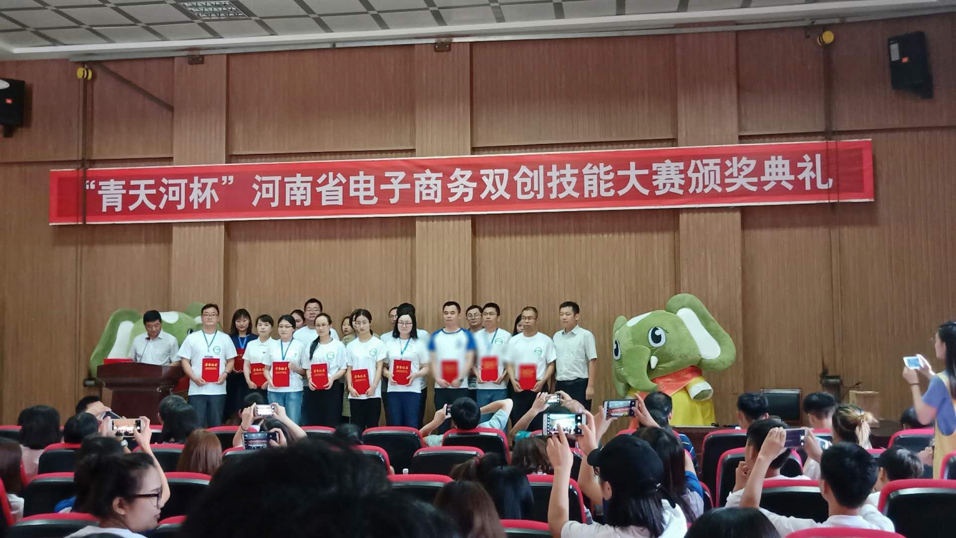 2018年6月10日,“青天河杯”河南省电子商务双创技能大赛决赛在焦作市博爱县举行,pg游戏官网商贸学院获得大赛优秀组织奖,商贸学院六道团队提交的蜜蜂智慧职业规划项目荣获团体赛三等奖、璀璨人生团队提交的共享珠宝项目荣获团体赛优秀奖,商贸学院吴昀老师获得优秀指导教师称号。