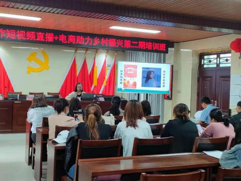 2021年5月19日,pg游戏电子模拟器pg游戏电子模拟器电子商务技术服务队再次来到开封市祥符区刘店乡授课。本次服务队由吴昀老师带队,电商工作室创客角的段笑迎、田奥奇同学分别作为主播助教和短视频助教,对乡民进行实践指导。有了上次的培训基础,乡村主播们的学习热情更加高涨。