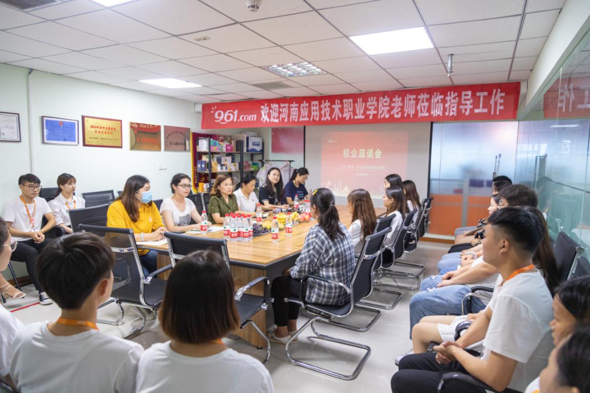 为加强与企业的沟通联系,获悉企业对人才的需求和质量要求,加强学生实习期间的思想教育,更好跟踪调查学生的实习就业情况,2020年8月6日,pg游戏电子模拟器周燕书记和思政教学部何秀霞主任,以及pg游戏电子模拟器和思政部相关教师来到郑州九六一电子商务有限公司,调研及回访学生就业情况。