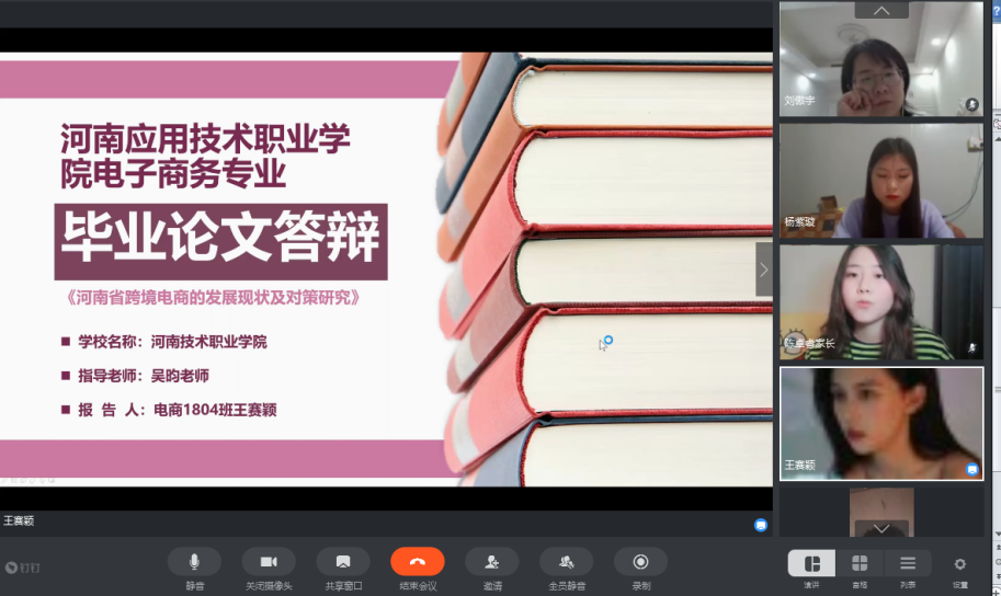 毕业论文是对学习成果的综合性总结和检阅,也是检验学生掌握知识的程度、分析问题和解决问题基本能力的一份综合答卷。为在疫情防控需要下保障教学质量,pg游戏电子模拟器于2020年5月26日通过钉钉在线会议的形式,组织了2018级各专业优秀毕业论文线上公开答辩活动。