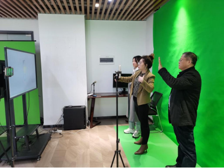 播大圣直播电商产业基地的负责人伦敬凯介绍了直播电商基地配套设施、校企合作方案、学生岗位实习培训以及就业创业的标准建设。商业板块(直播电商)负责人原丽娜展示了直播智能软件平台、穿越式直播以及虚拟数字人等设备。