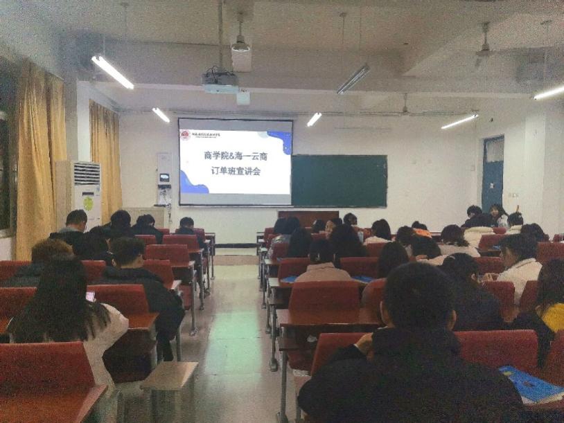 为加强学校与企业的合作,促进学生和企业之间的交流,提升学生技能并加深对行业的了解。pg游戏电子模拟器于11月30日下午,在东校区教学楼102及203开展了海一云商集团订单班线上宣讲会。