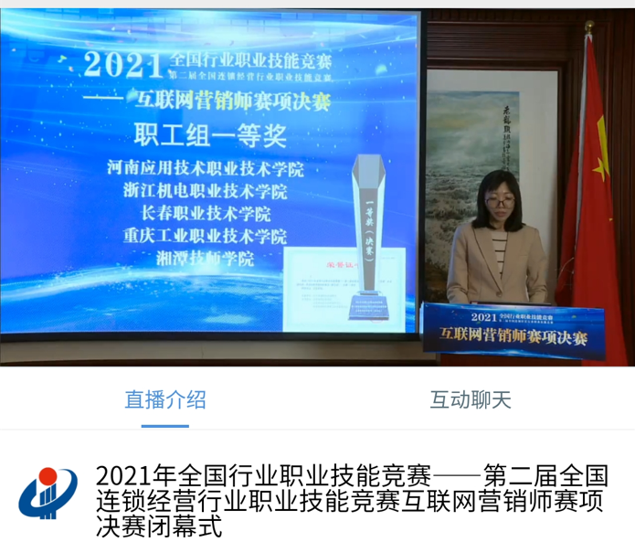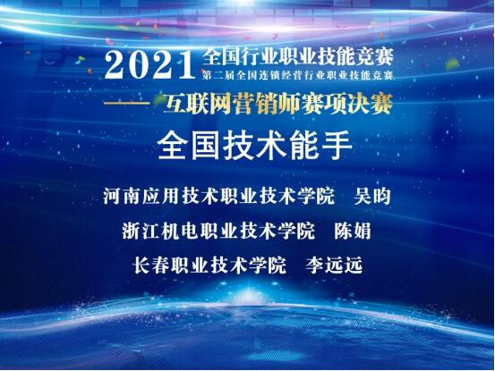 11月13日,2021年全国行业职业技能竞赛——第二届全国连锁经营行业职业技能竞赛首届互联网营销师赛项全国总决赛圆满落幕。我院pg游戏电子模拟器教师吴昀以总分第一名的成绩获得职工组一等奖,根据竞赛规程,职工组决赛前3名的选手,在报请人力资源和社会保障部核准后,将授予“全国技术能手”荣誉称号。