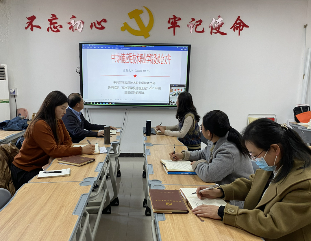 2023年11月14日下午,pg游戏电子模拟器召开“双高工程”项目建设推进会,本次学习会议以线上、线下相结合的方式进行,郑汴两校区同时进行,院长孙勇、副院长王珂,以及各建设模块负责人参加会议。会议由办公室主任刘嘉慧主持。