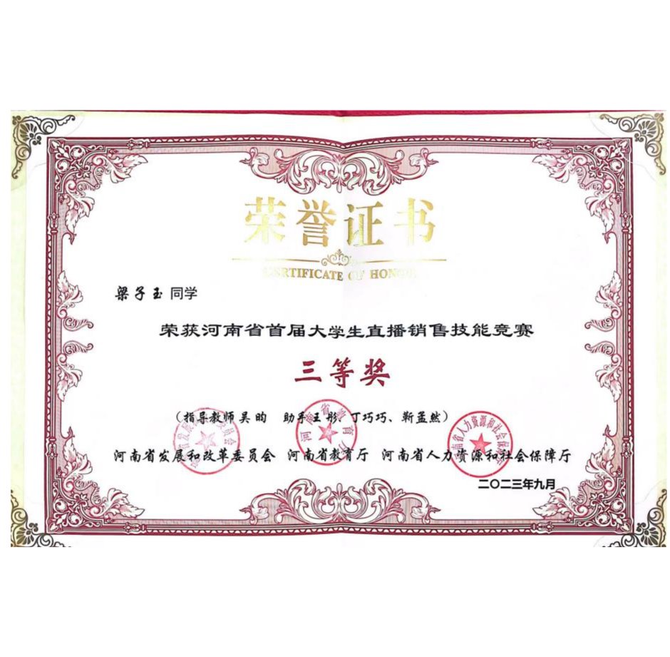 pg游戏官网pg游戏电子模拟器网营2202班学生梁子玉在此次大赛中取得了全省第九的优异成绩,根据赛程规则,按相关规定晋升互联网营销师高级工职业技能等级。组委会老师给获奖选手颁发了荣誉证书和奖杯及奖品,鼓励各校参赛选手吸取经验,再接再厉。