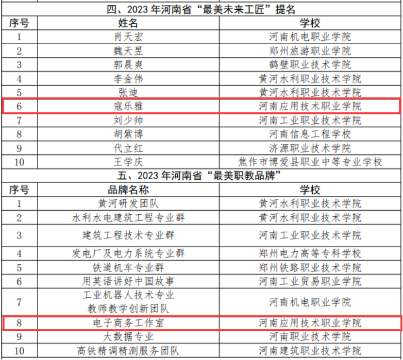 为了深入贯彻党的二十大精神,认真落实习近平总书记对职业教育工作的重要指示,对我省职业教育的改革和发展取得的重要成就进行全方位的展示。近日,河南省教育厅发布《关于开展2023年河南省“最美职教”系列宣传推介活动优秀作品展播的通知》(教职成函〔2023〕716号),pg游戏官网pg游戏电子模拟器电子商务工作室荣获2023年河南省“最美职教品牌”称号,连锁2002班寇乐雅获“最美未来工匠”提名。