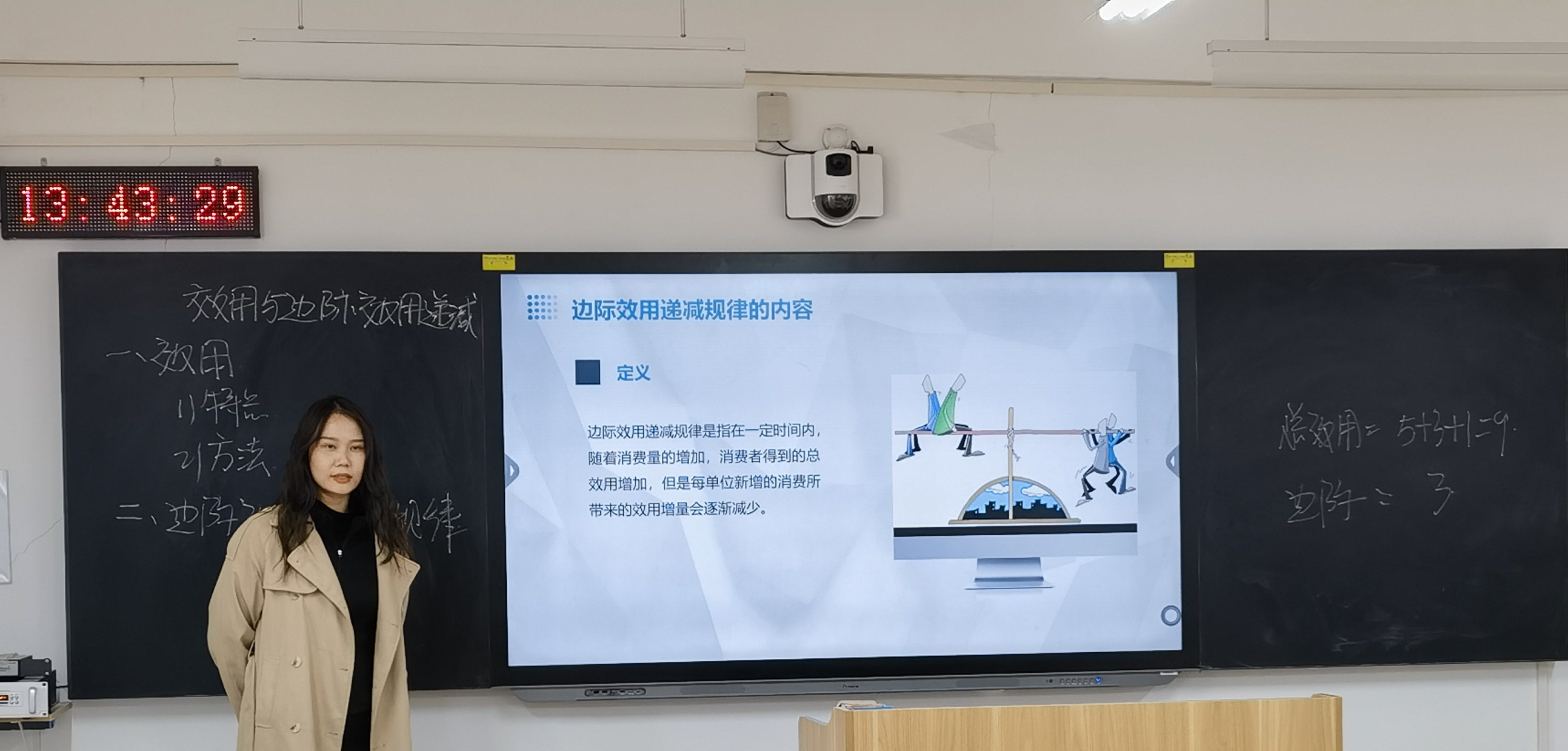 马晓月老师选择《经济学》课程中的《效用与边际效用递减》这一模块进行教学展示。在《效用与边际效用递减》这一模块中,她详细阐述了效用理论的基本概念,并结合实际经济现象,深入剖析了边际效用递减规律在日常生活中的应用。马老师通过提问、讨论等互动方式,激发学生的学习兴趣,使课堂氛围异常活跃。