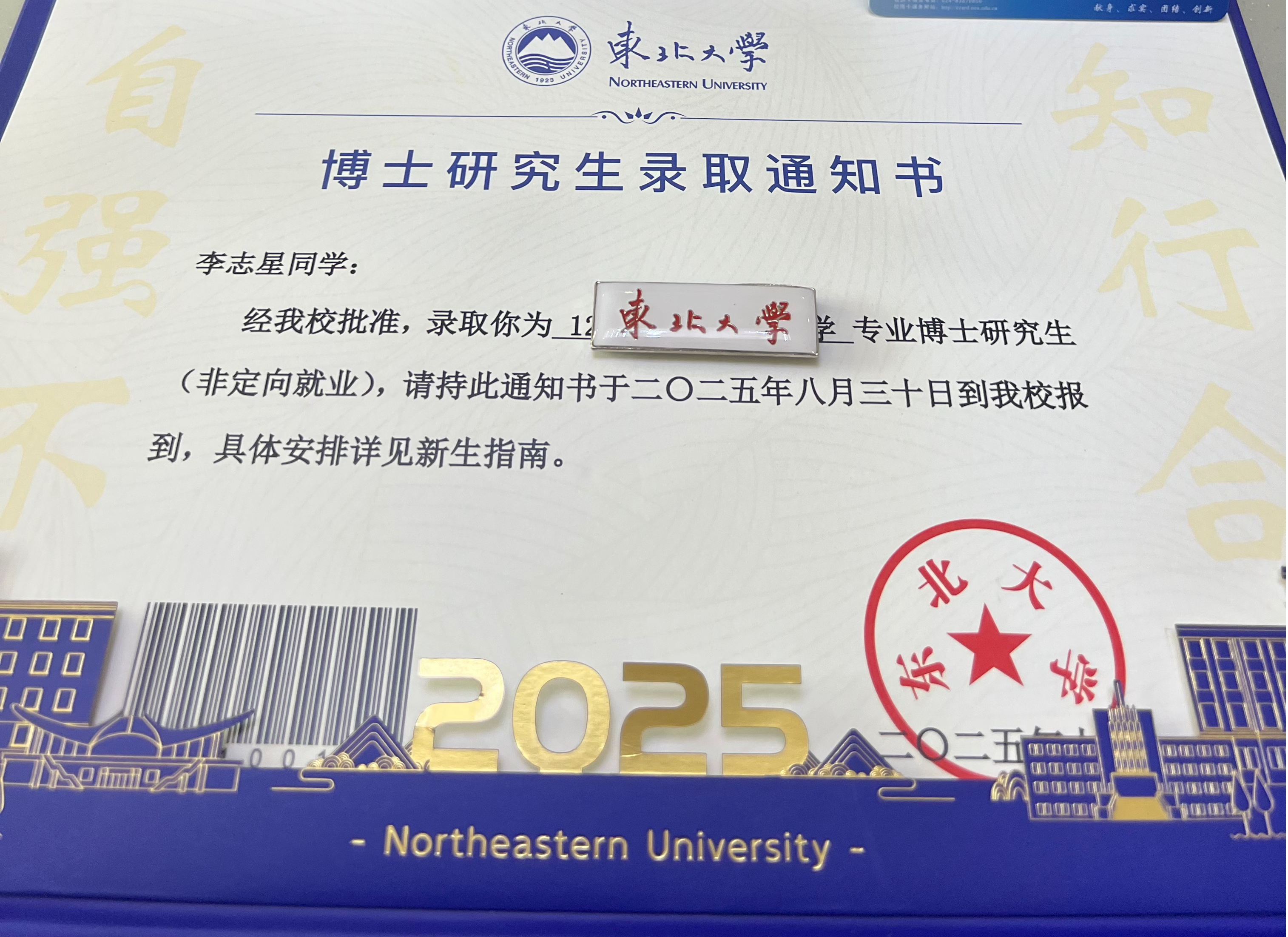 2025年7月17日,pg游戏电子模拟器物流1702班毕业生李志星收到东北大学博士研究生录取通知书,以十二年持续奋进的求学经历,在高等教育的进阶之路上留下了坚实足迹。