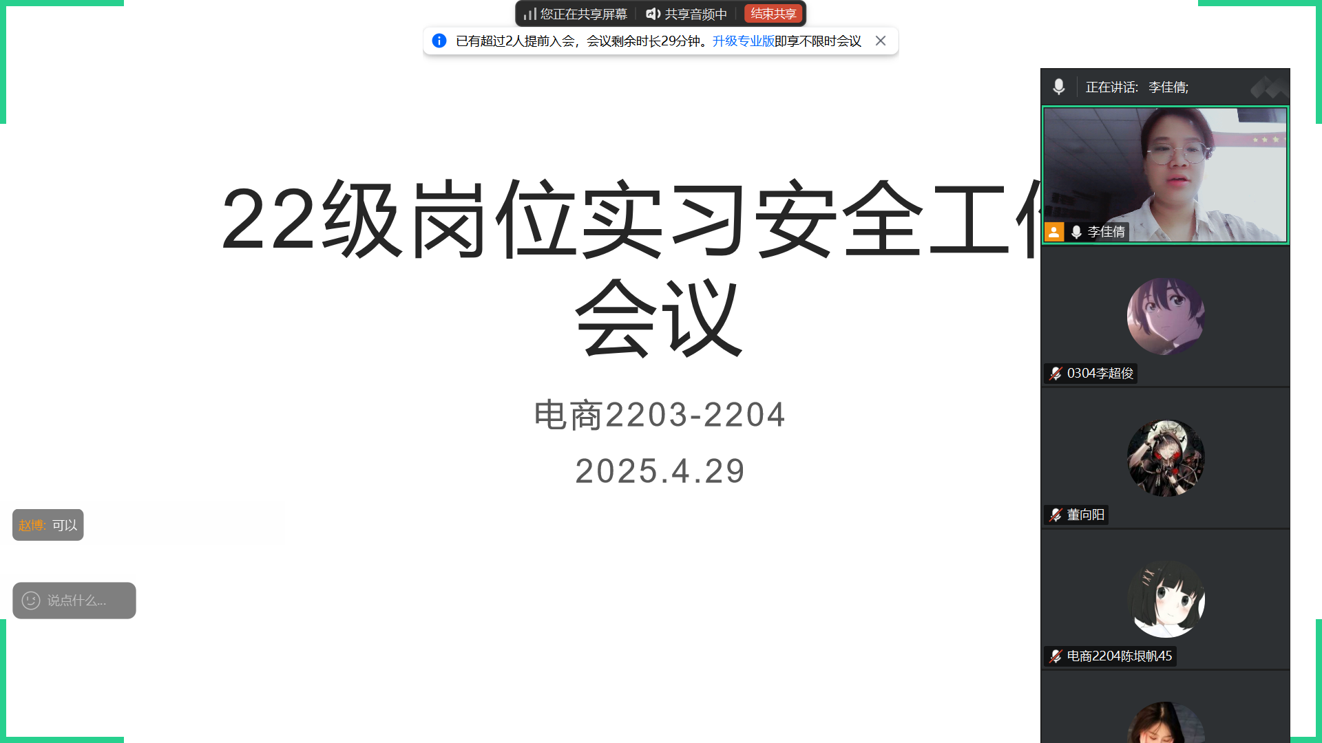 全体岗位实习指导教师对各班级学生开展线上安全教育活动。教育内容涵盖出行安全、消防安全、住宿安全、职业安全等多个方面,着重强调安全保护意识和防范能力的重要性,引导学生时刻保持警惕,确保自身安全。针对即将进入尾声的2022级岗位实习,特别提醒学生在假期前后做好实习收尾工作,整理实习资料,善始善终完成实习任务,同时在剩余实习期间更要绷紧安全弦,将安全规范落实到工作的每一个细节中。