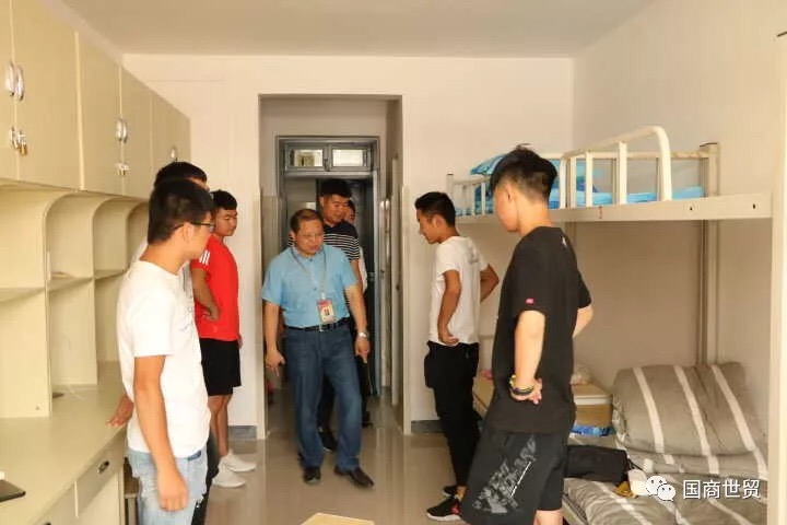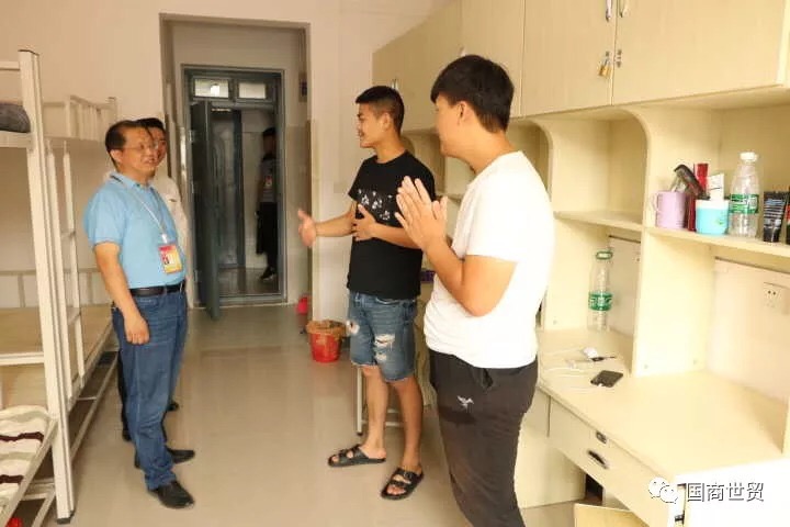 商贸学院孙勇院长带领男辅导员一行看望了住在男生6号楼、4号楼的同学们,与同学们进行交谈,告诫同学们注意保持宿舍卫生,安全用电、警惕校园贷小广告等。