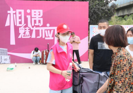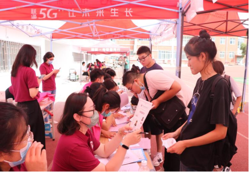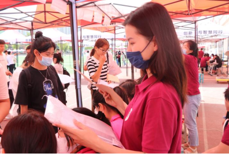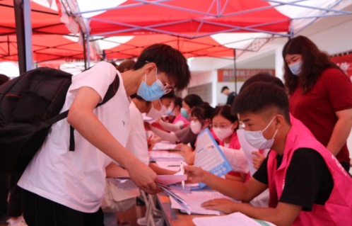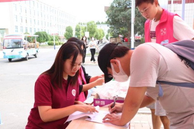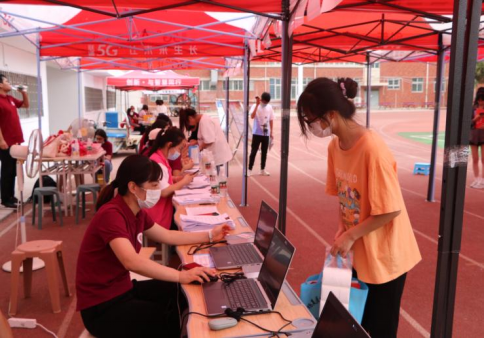 志愿者们帮助学弟、学妹们忙碌的身影