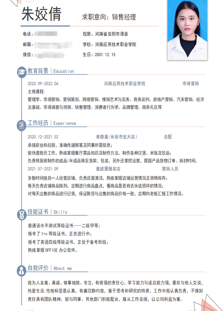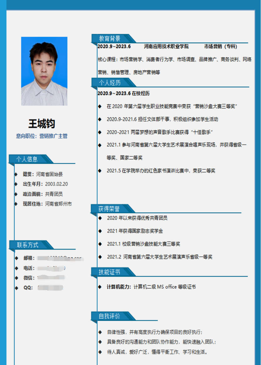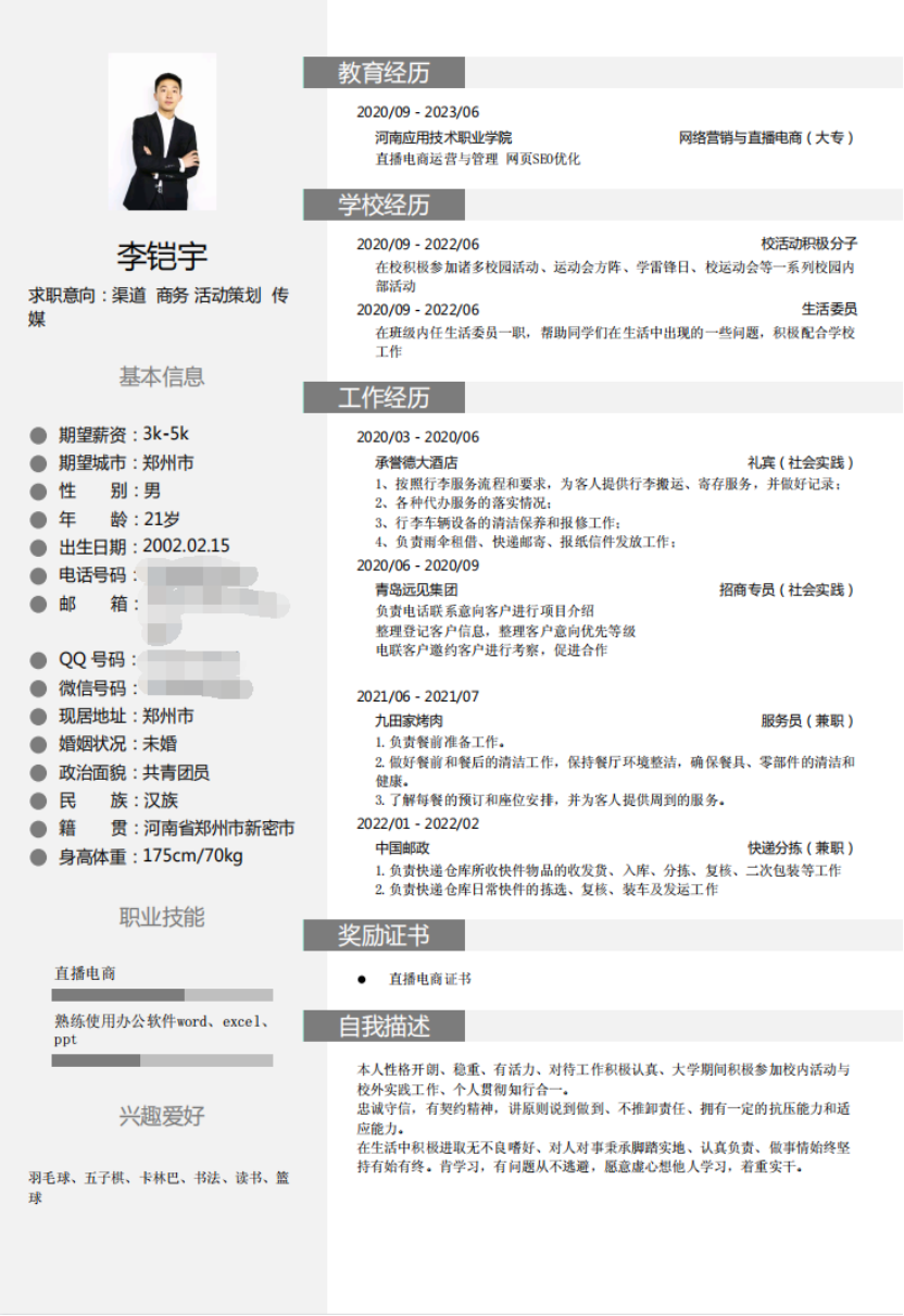 简历是展示自我的一块求职“敲门砖”,为帮助pg游戏电子模拟器20级学生增强就业意识,充分做好就业准备,制作出优秀的简历并能在求职过程中成为自身的“重要法宝”。pg游戏电子模拟器开展了第五届简历设计制作大赛,pg游戏电子模拟器20级全体学生参与了简历制作。下面我们来共同欣赏20级求职小可爱们的优秀简历吧!