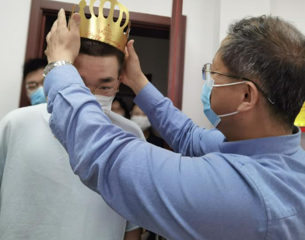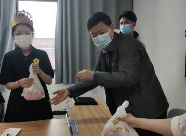 周燕书记为同学们切蛋糕,分蛋糕。她告诉同学们要坚定战疫必胜的信念,封闭管理是暂时的,疫情总会过去的。感谢同学们为学校疫情防控、守护校园平安做的贡献。她也叮嘱同学们要怀一颗感恩之心,感恩父母的养育,感恩成长在这个幸福年代,常给父母联系报个平安,遵守防疫规定不给学校添乱。