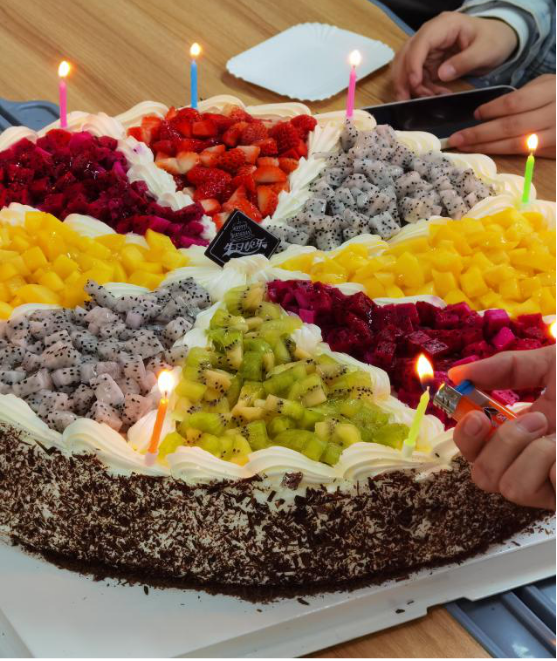 “祝你生日快乐,幸福快乐......”4月7日晚上,pg游戏官网办公楼504活动室里传出了生日歌。水果蛋糕、七彩蜡烛、生日心愿、欢快歌曲、水果礼包......虽是布置简单的活动现场,却营造出了浓厚的生日氛围。