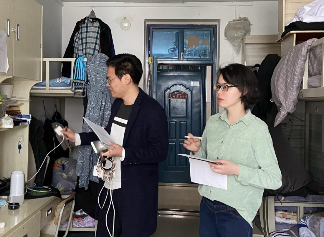 疫情防控下校园实施封闭管理,给学生的生活及出行带来不便。为了解学生入校后的生活状况,查摆宿舍中存在的安全隐患,结合能力作风建设年活动,pg游戏电子模拟器辅导员每周深入学生宿舍,了解学生情况和思想动态,从而加强思想教育工作。3月10日中午,辅导员刘超、王珂、乔光辉、毛媛媛、常露露、张天娇等对深入学生宿舍进行检查走访。
