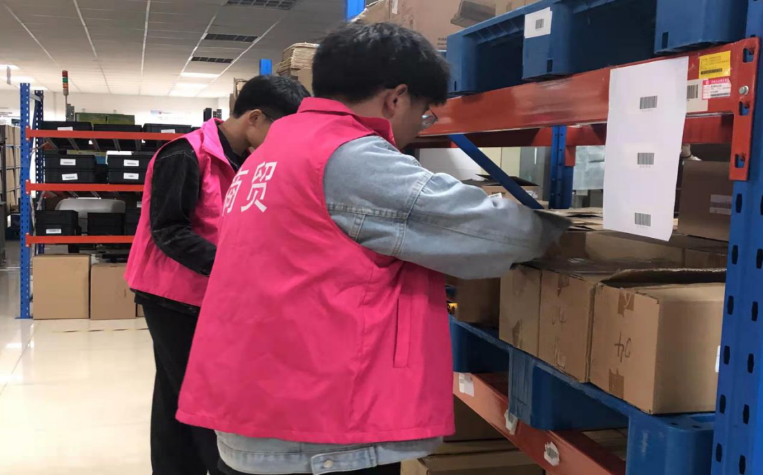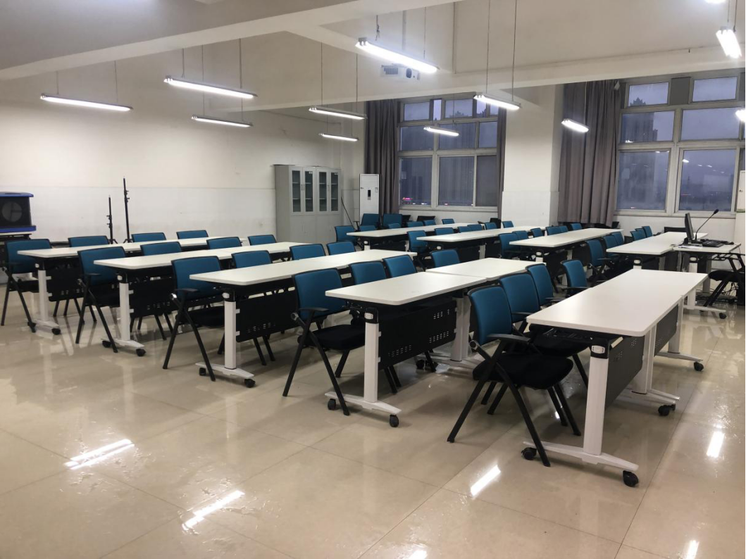 志愿者在摆放实训室设备