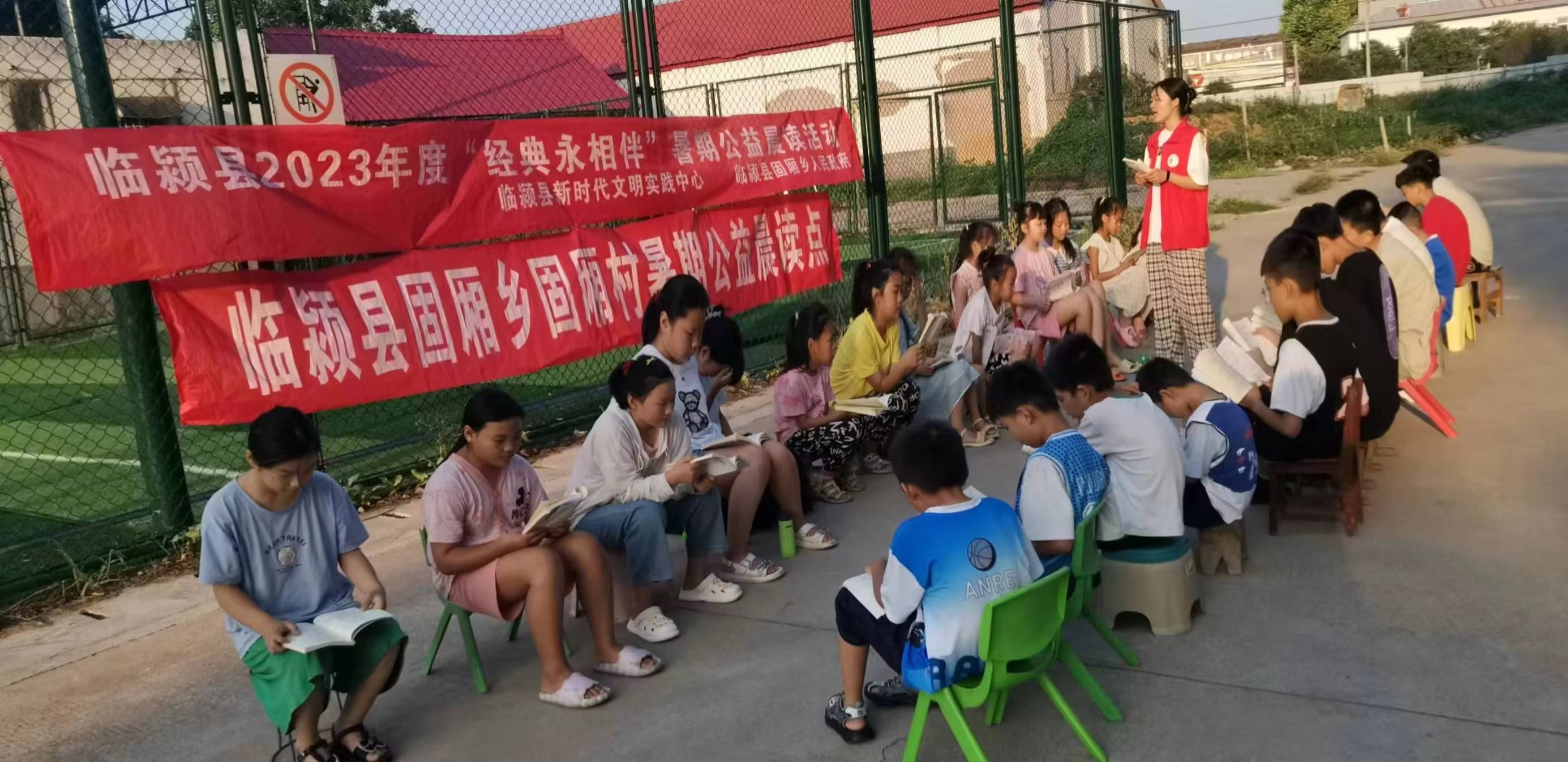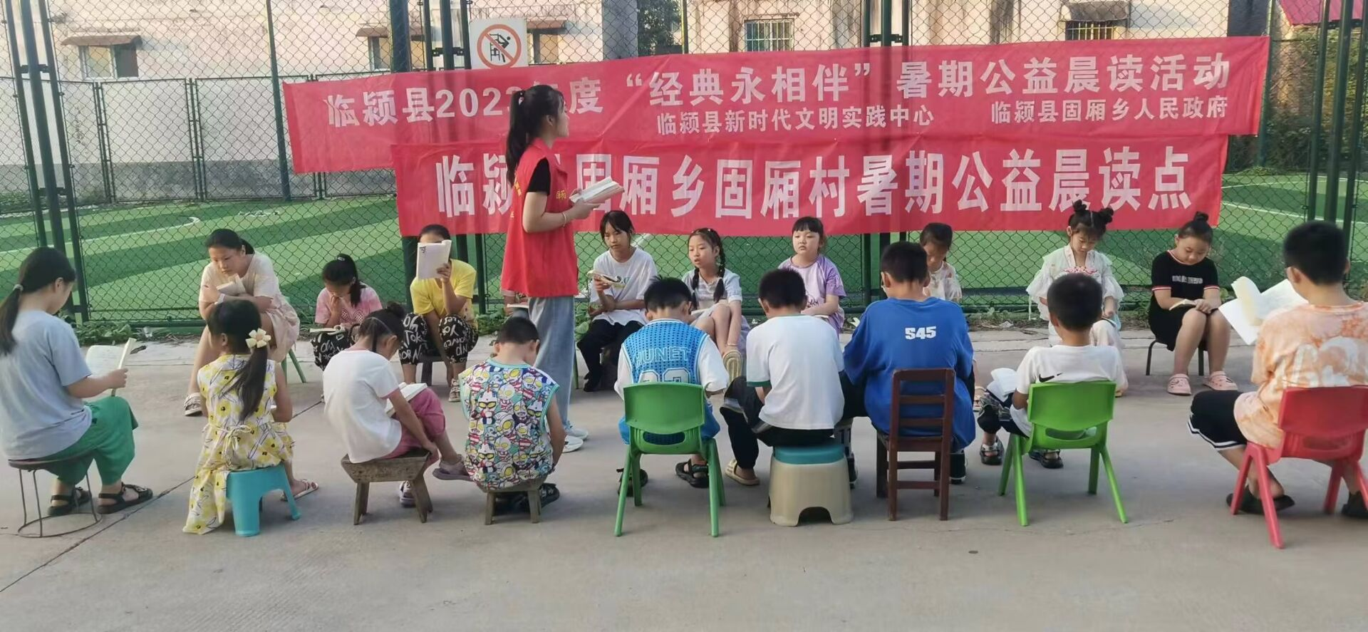 实践内容:7月9日至7月29日参加“阅享新时代 书香润临颍”举办的公益晨读活动,每天早晨5:00-7:00带领小朋友们背诵经典古诗词,讲解文学历史。