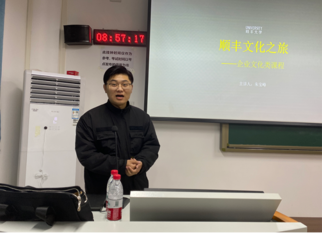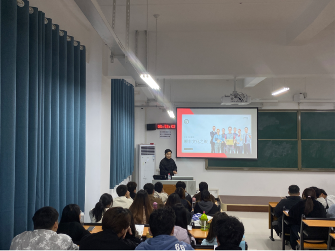 宣讲会在顺丰企业播放的宣传片中拉开序幕,顺丰速运集团人事经理朱宝峰对企业文化、行业发展趋势等方面进行了详细介绍,让学生熟悉企业的同时,也明确将来的发展方向。