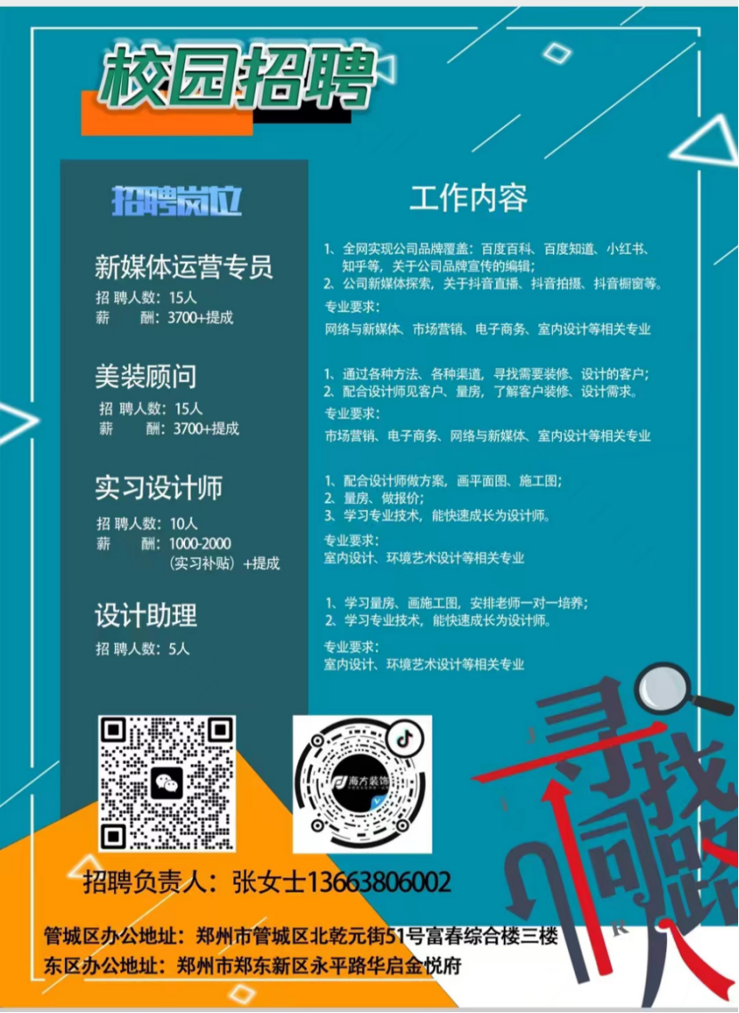 招聘岗位:美装顾问、新媒体运营专员
