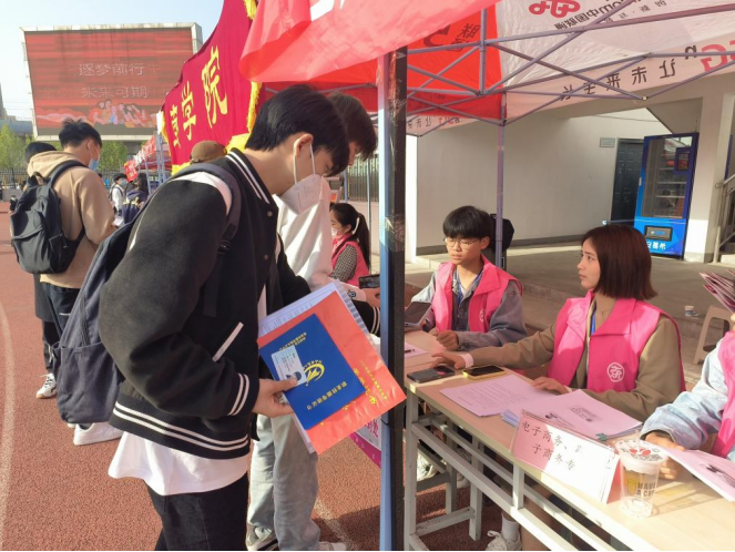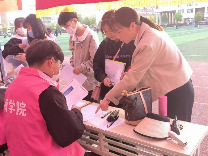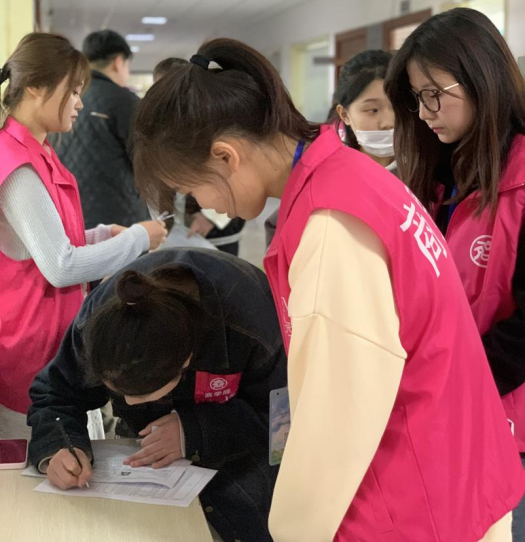 4月7日下午,师生志愿者在现场确认时正在耐心为考生讲解考试注意事项~