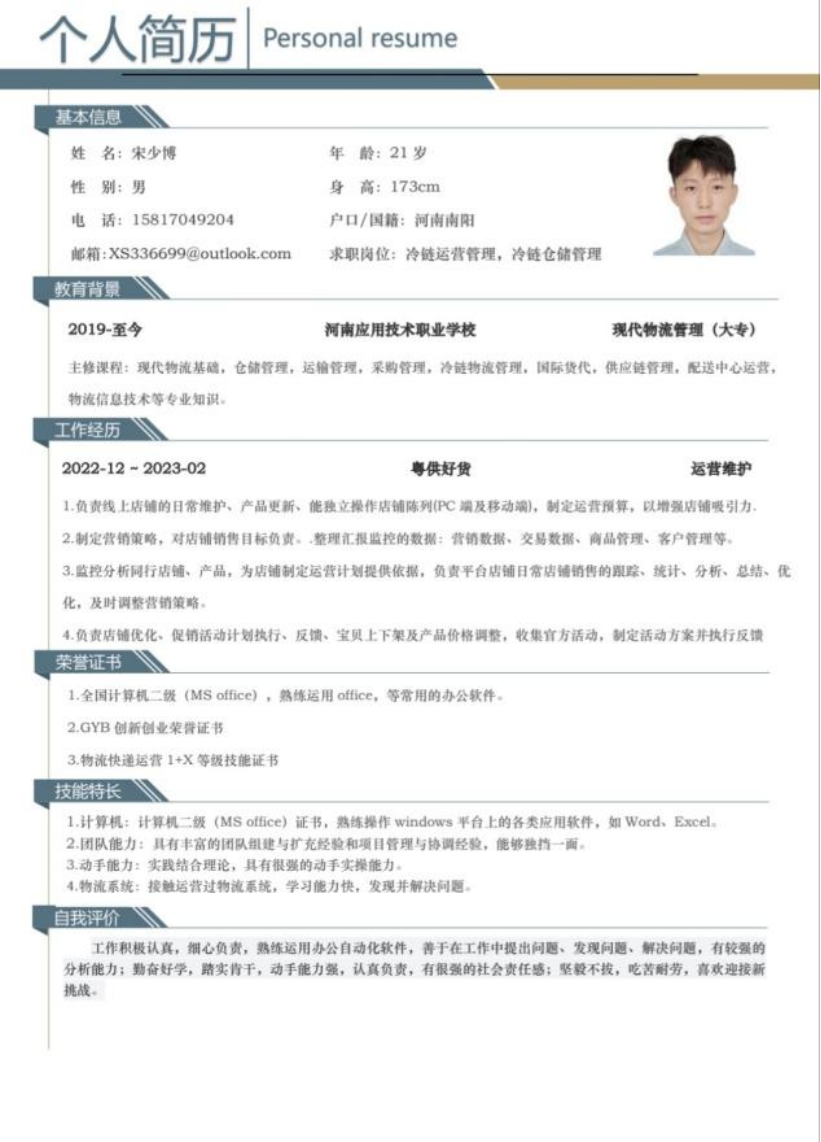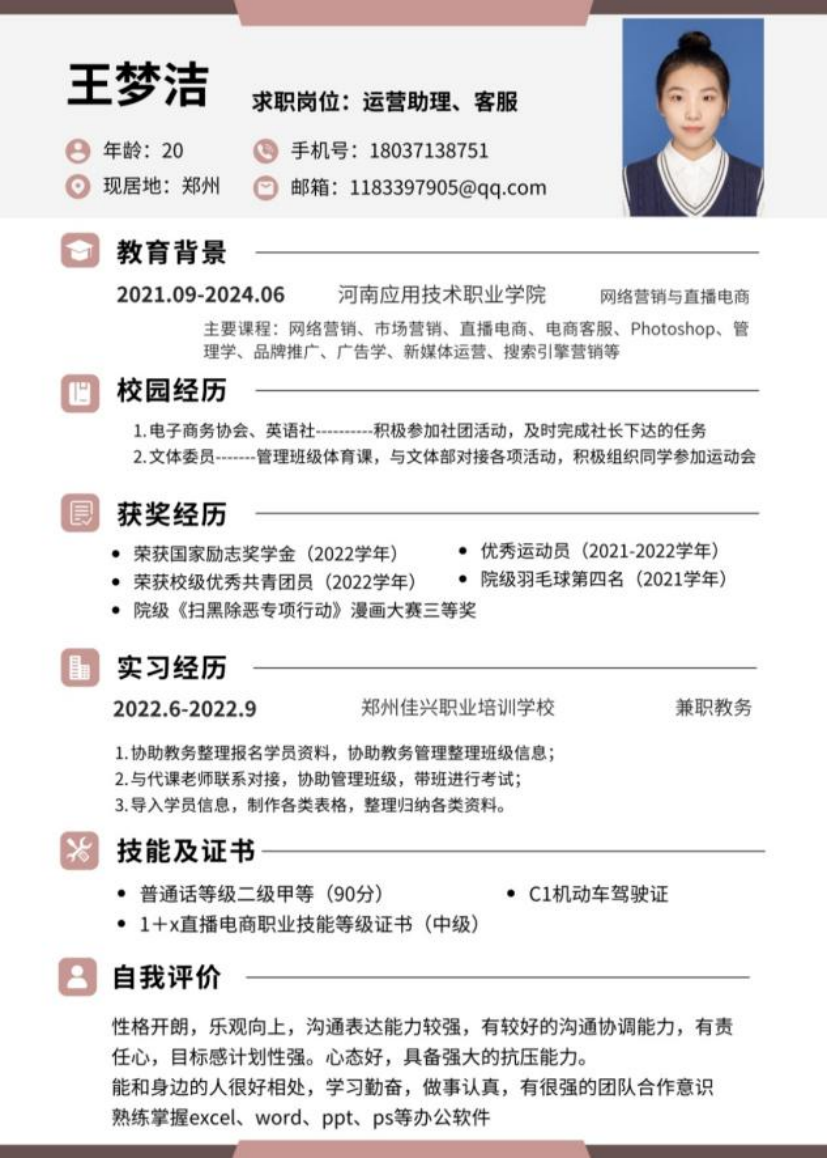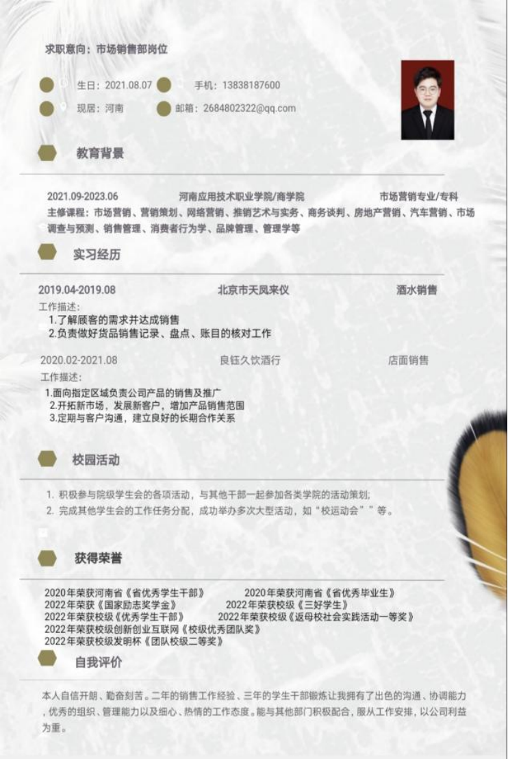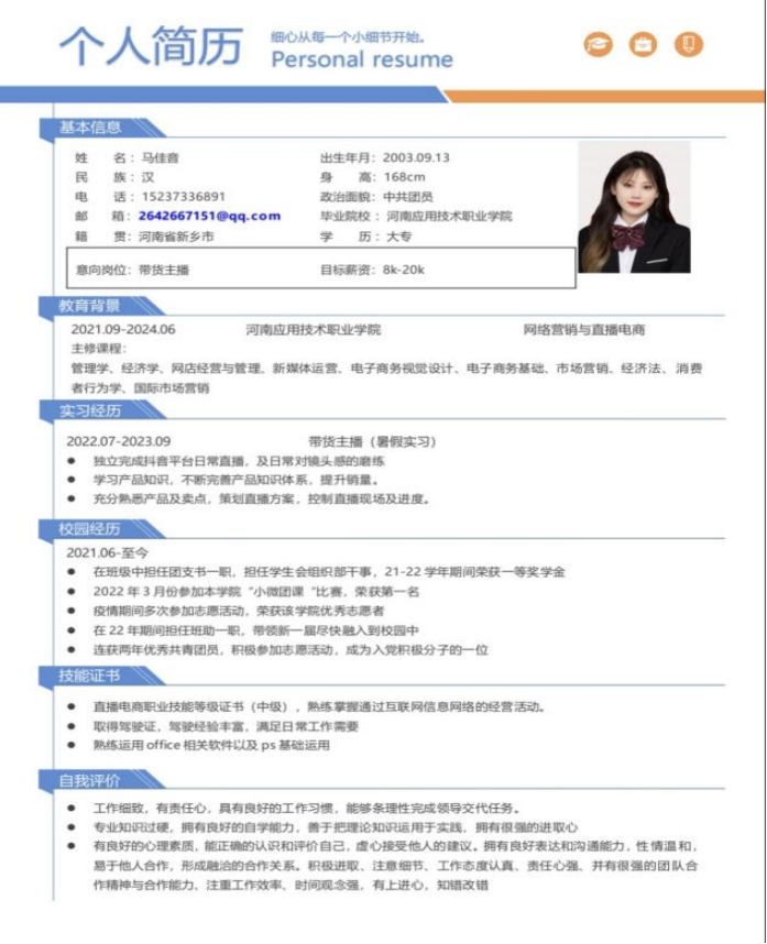 为帮助学生增强就业意识,普及就业技巧,增强就业技能,充分做好就业准备,pg游戏电子模拟器举办“第六届大学生简历设计制作大赛”,通过比赛大多数同学能够掌握简历设计及撰写要领,同学们的作品外观设计巧用心思,整洁美观又能凸显专业及个人特点。让我们一起来看看部分获奖者的优秀简历吧。