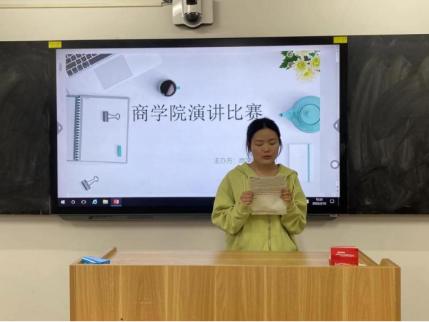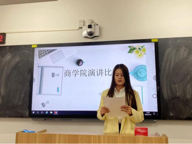 在演讲比赛中,参赛选手们结合自身学习、生活经历和感悟,用生动的语言、鲜活的事例、真挚的情感以及形式多样的宣讲形式,表达了青年大学生学习党的二十大精神的所思所悟。通过演讲的形式,选手们用自信昂扬的声音表达对党的忠诚与热爱,以落落大方的姿态呈现青年积极向上的精神风貌,选手们结合自身实际带来精彩的演讲,赢得在场评委以及同学们的阵阵掌声。
