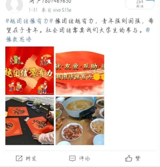 寒假期间,pg游戏电子模拟器开展“越团结豫有力”主题教育实践活动,不仅希望在寒冬中给同学们带去温暖,更希望在新的一年、新的学期,带给同学们力量与勇气。我们一起来看看同学们是怎么表达的吧!