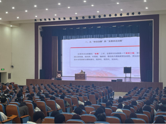 本次宣讲会主要从“依法治国”到“全面依法治国”、全面依法治国的总抓手、建设法治中国三个模块进行讲解。通过庞老师深入浅出的讲解让学院师生深刻认识到全面依法治国是社会主义法治建设的“全面升级版”,全面依法治国的总抓手是建设中国特色社会主义法治体系,而建设法治中国要坚持法治国家、法治政府、法治社会一体推进。