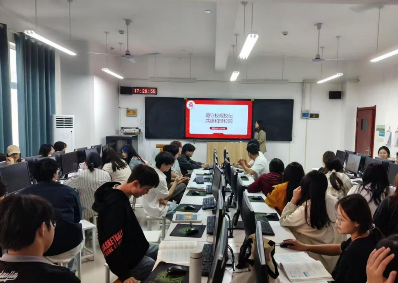 班会伊始,辅导员们运用精心准备的PPT,结合真实的校园案例,详细讲解了学校的各项规章制度,包括课堂纪律、考试规则、宿舍管理规范等内容,让同学们清晰地了解违反校规校纪带来的严重后果。随后,各班通过播放相关教育视频等形式,引导同学们反思日常行为中存在的问题。在交流环节,同学们积极分享自己身边发生的正反事例,共同探讨如何在日常生活和学习中更好地遵守校规校纪,并提出了许多富有建设性的意见和建议,如设立班级文明监督岗、开展纪律知识竞赛等。